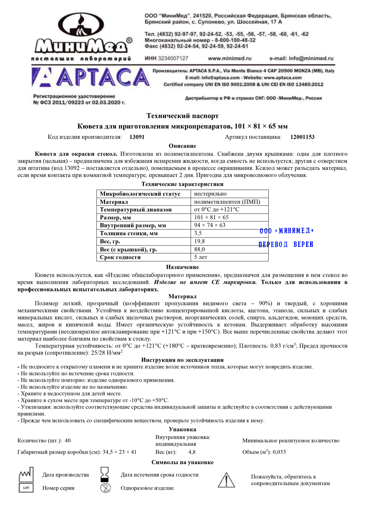 Кювета для приготовления микропрепаратов,101×81×65,ПМП,Aptaca