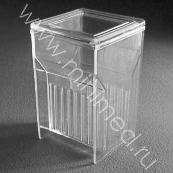 Предназначена для окрашивания микропрепаратов на предметных стеклах (вертикально) размером 76х26х2,0 мм. Изготовлена из полиметилпентена (ПМП).