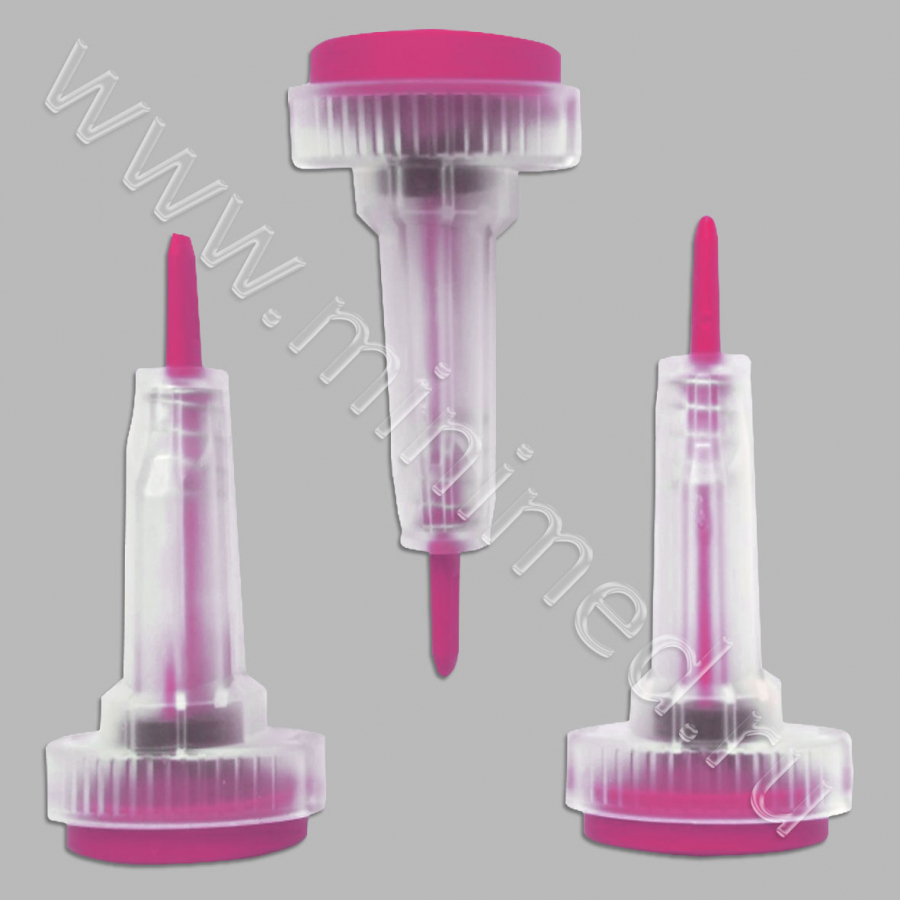 Ланцет заключен в пластиковый прозрачный чехол. Активация ланцета происходит при прикосновении к коже и нажатии на кнопку сверху ланцета. Цвет кнопки - розовый. Неонатальный. Стерильность - гамма-лучи.