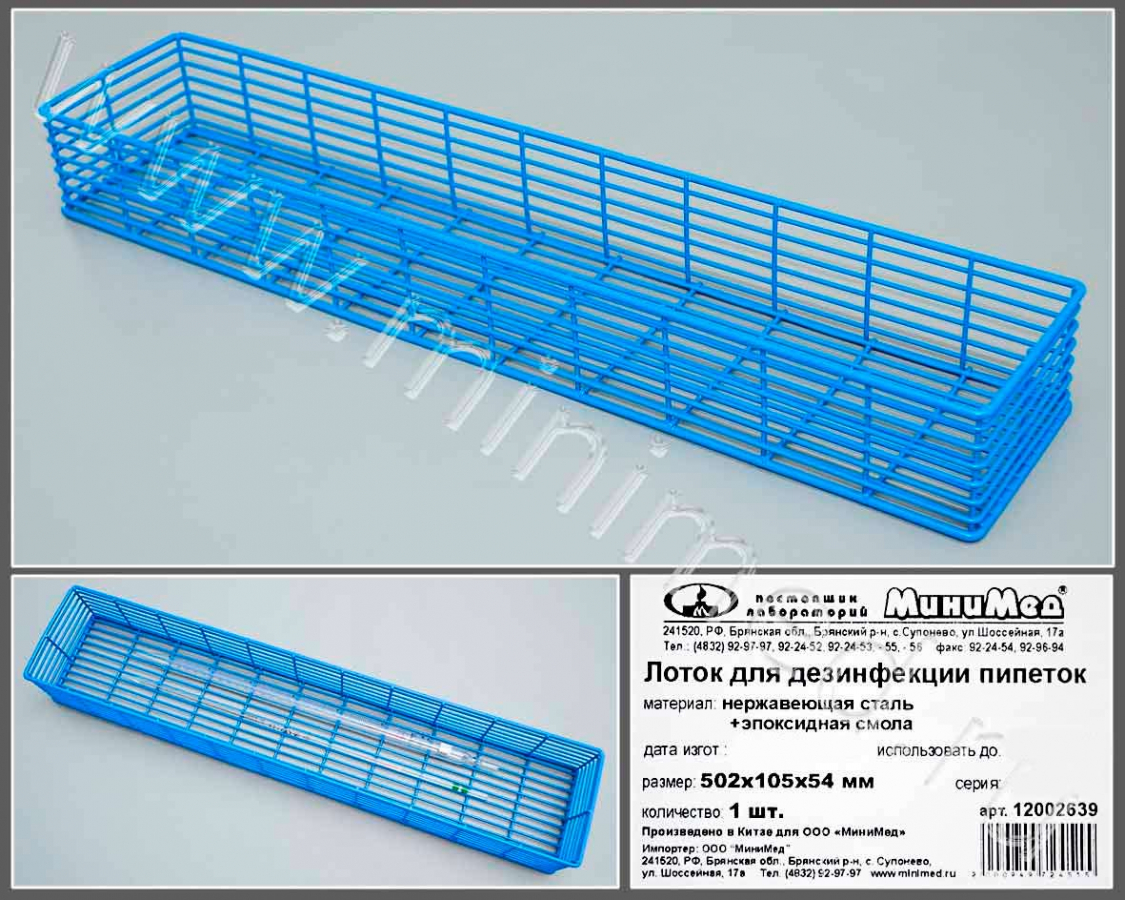 Предназначен для дезинфекциимерных пипеток, а также пиеток Мора вместимостью до 10 мл. Изготовлен из нержавеющей стали, с покрытием из эпоксидной смолы. Устойчив к коррозии. Подлежит автоклавированию.