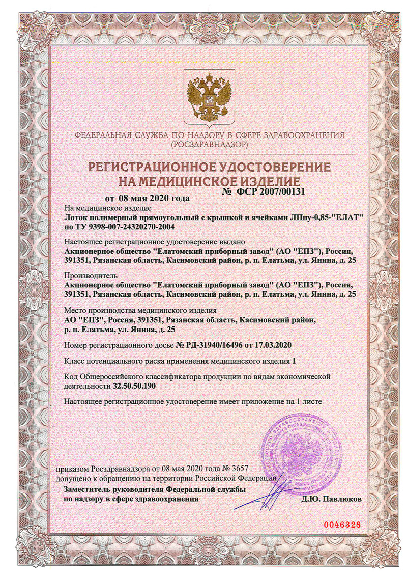 РУ № ФСР 2007/00131 от 08.05.2020 г.