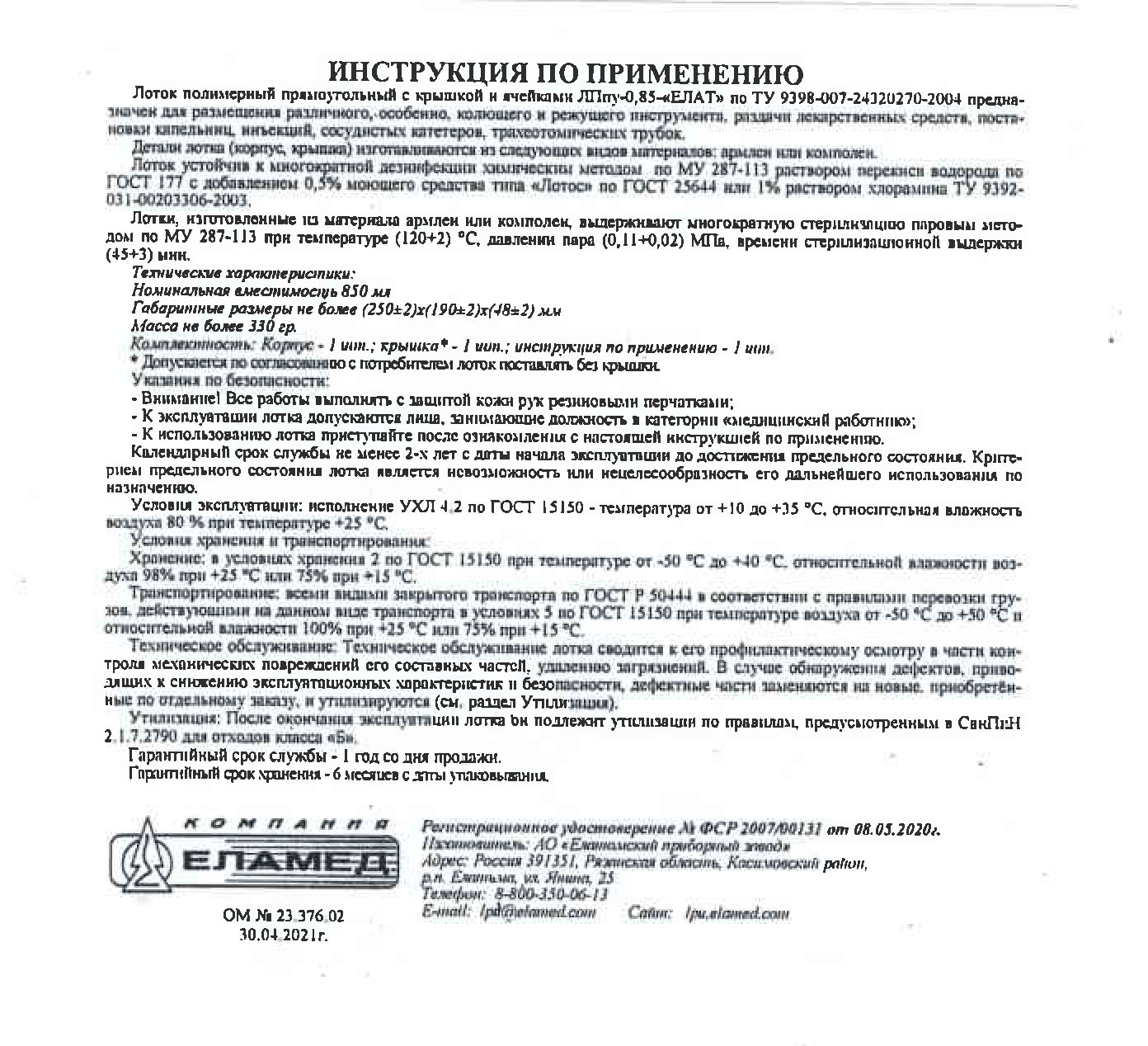- Лоток полимерный прямоугольный ЛПпу-0,85А-ЕЛАТ. Инструкция