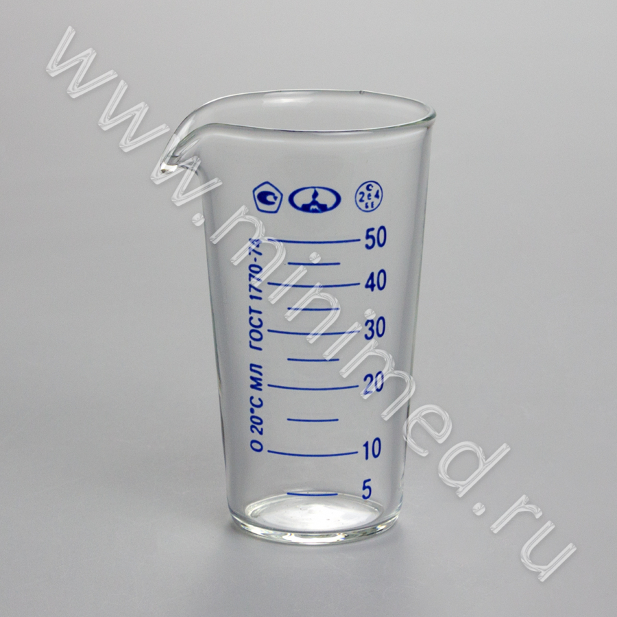Мензурка 50 мл ТУ 9464-013-52876351-2014, ГОСТ 1770-74, МиниМедПром, уп.12 шт