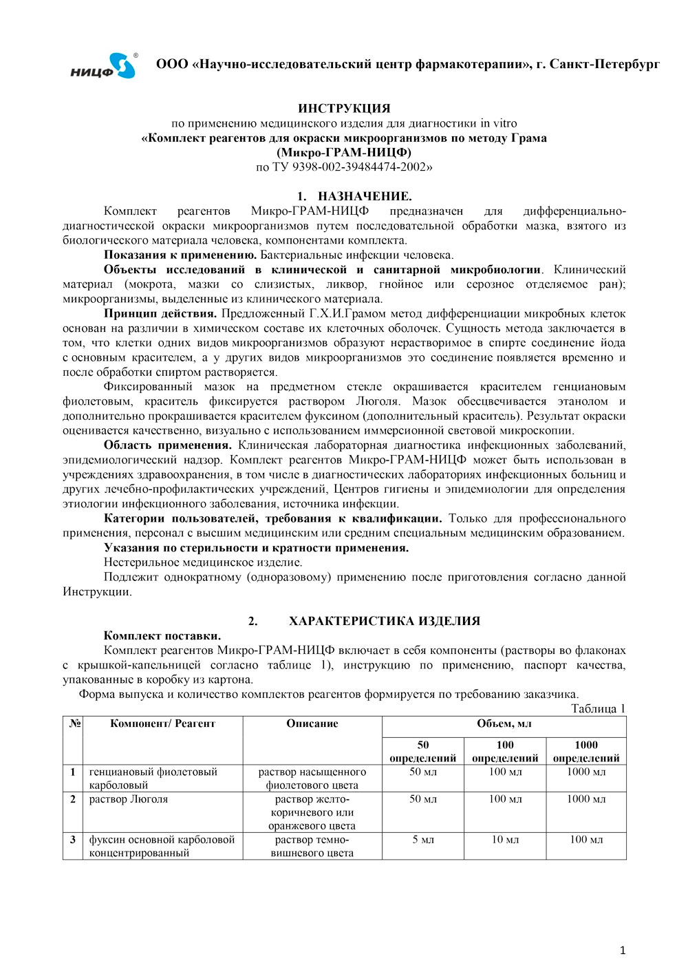 - Комплект реагентов Микро-ГРАМ-НИЦФ. Инструкция-1