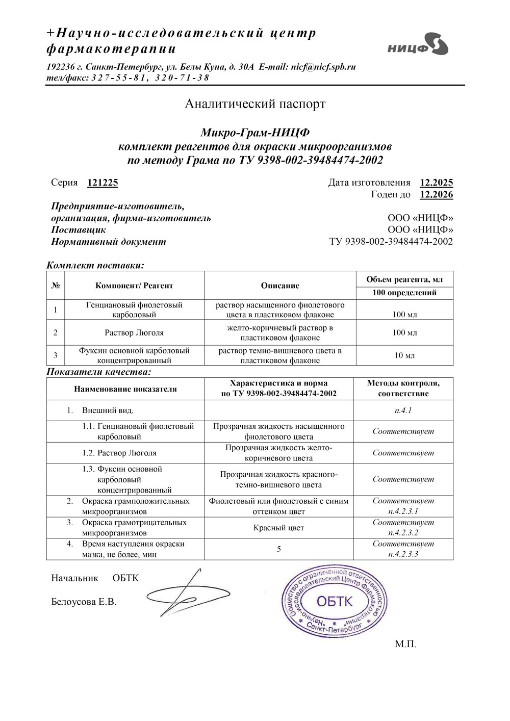 - Комплект реагентов Микро-Грам-НИЦФ с. 121225 до 12.2026