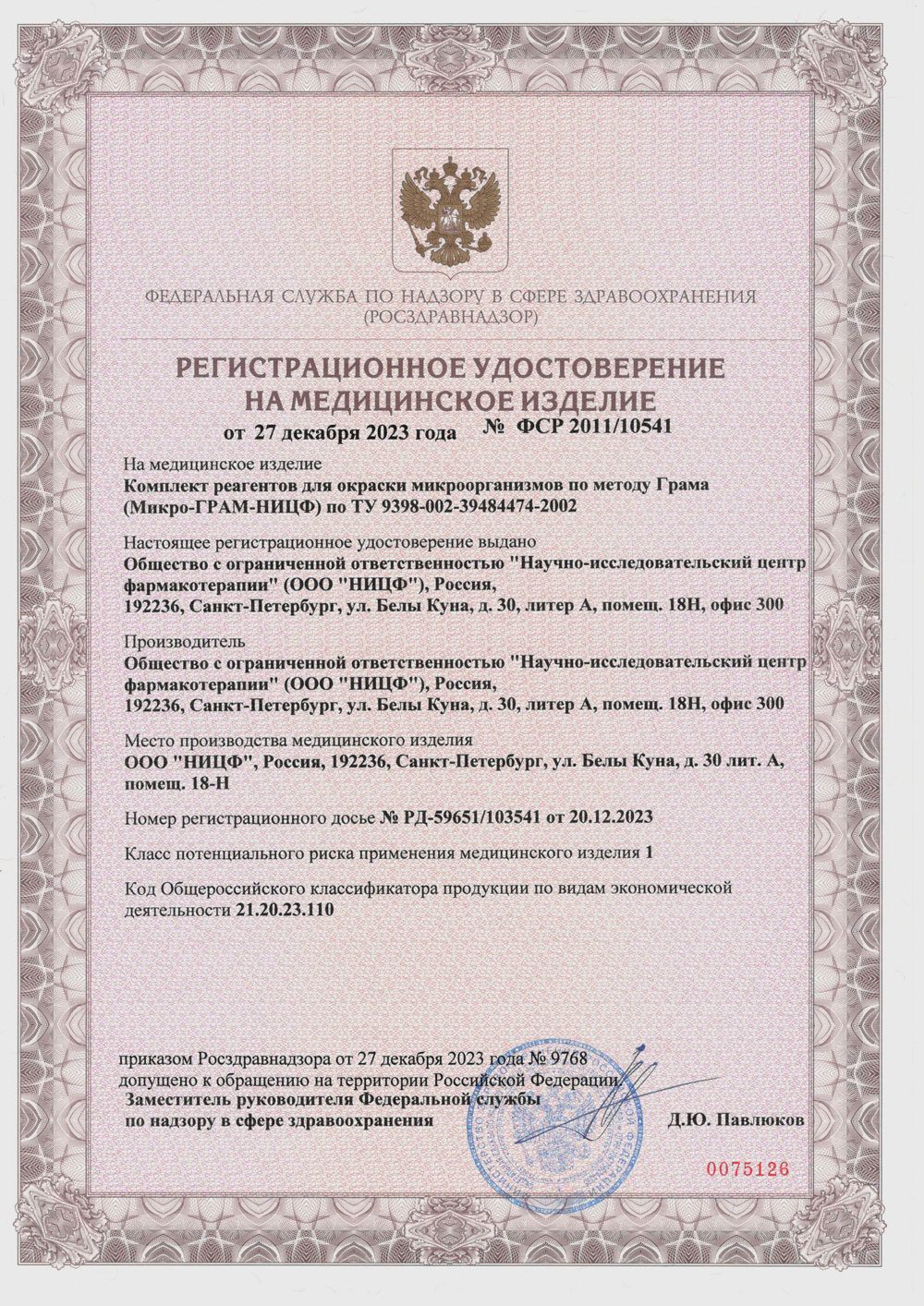 РУ № ФСР 2011/10541 от 27.12.2023 г.