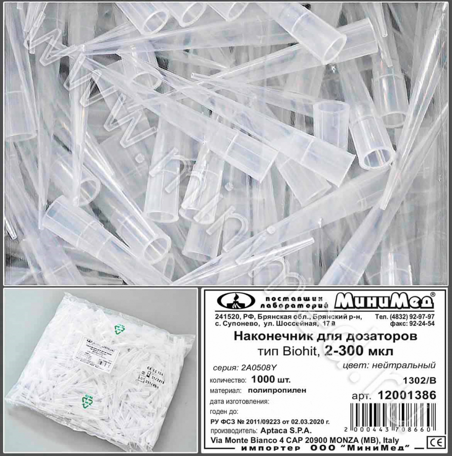 Наконечник для дозаторов 2-300 мкл, тип Biohit, нейтральный, уп. 1000 шт., Aptaca