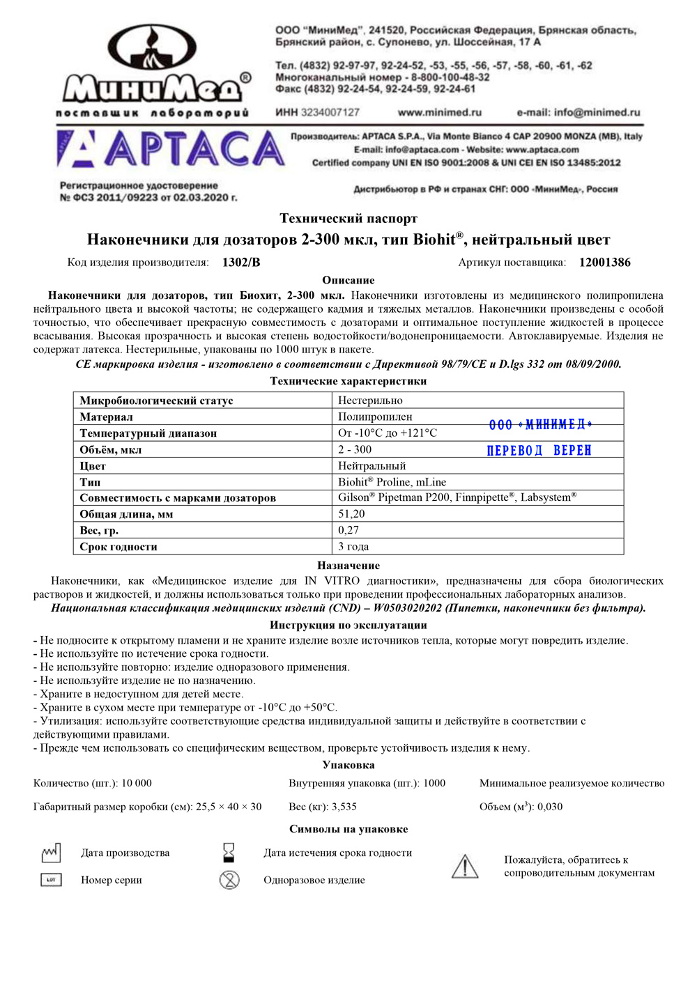 Артикул.................................................. 12001386