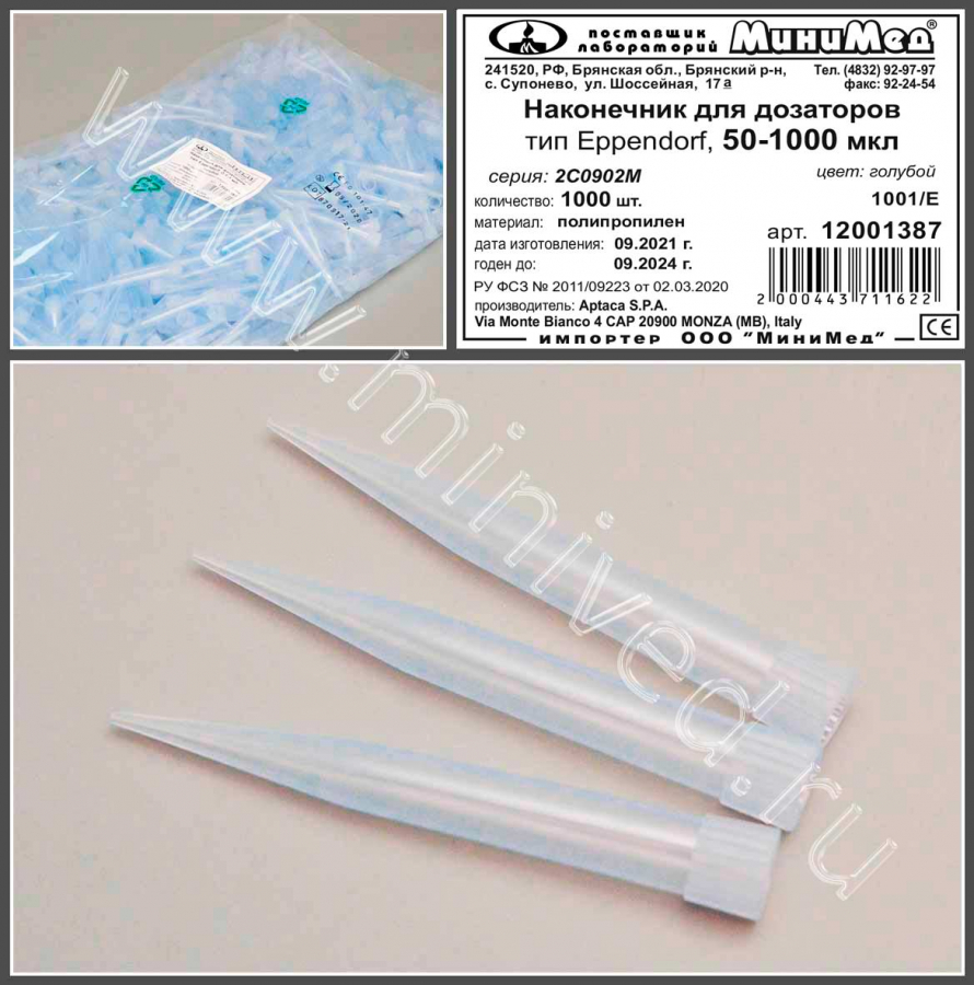 Наконечник для дозаторов 50-1000 мкл, тип Eppendorf, голубой, уп.1000 шт, Aptaca