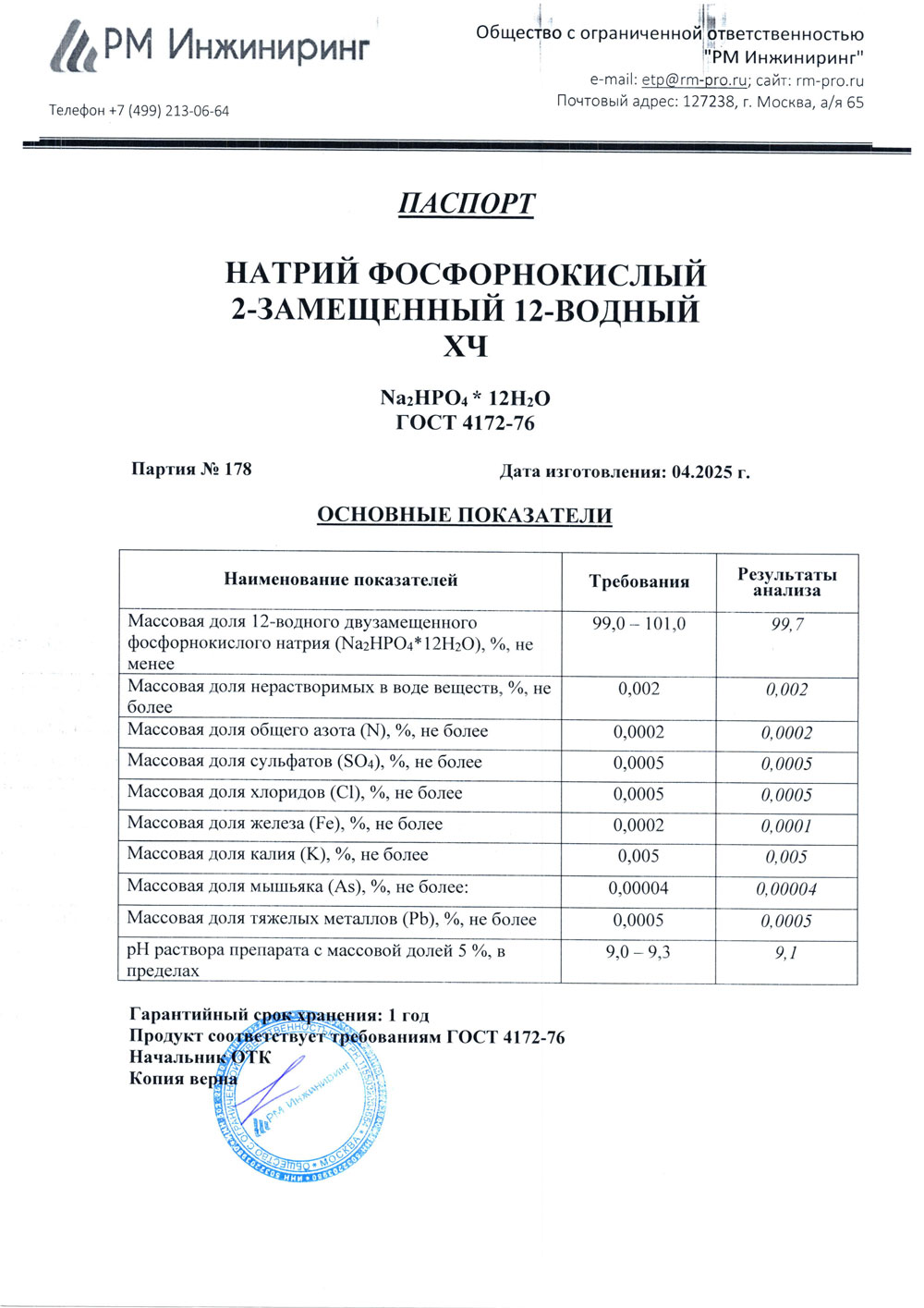 Натрий фосфорнокислый 2-замещенный12-водный, хч, 0,8 кг