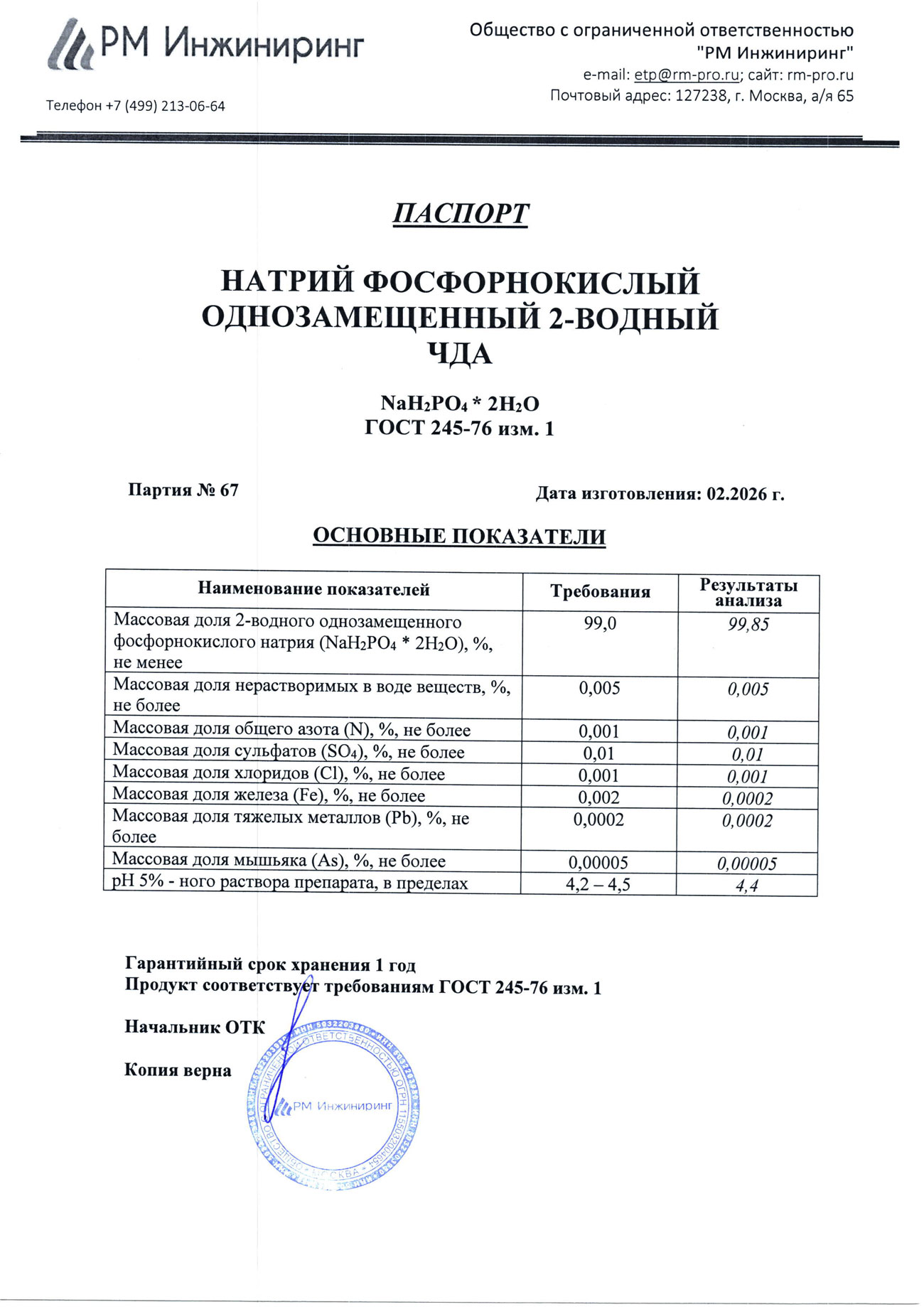 Натрий фосфорнокислый 1-замещ.,2-вод., чда, 1 кг