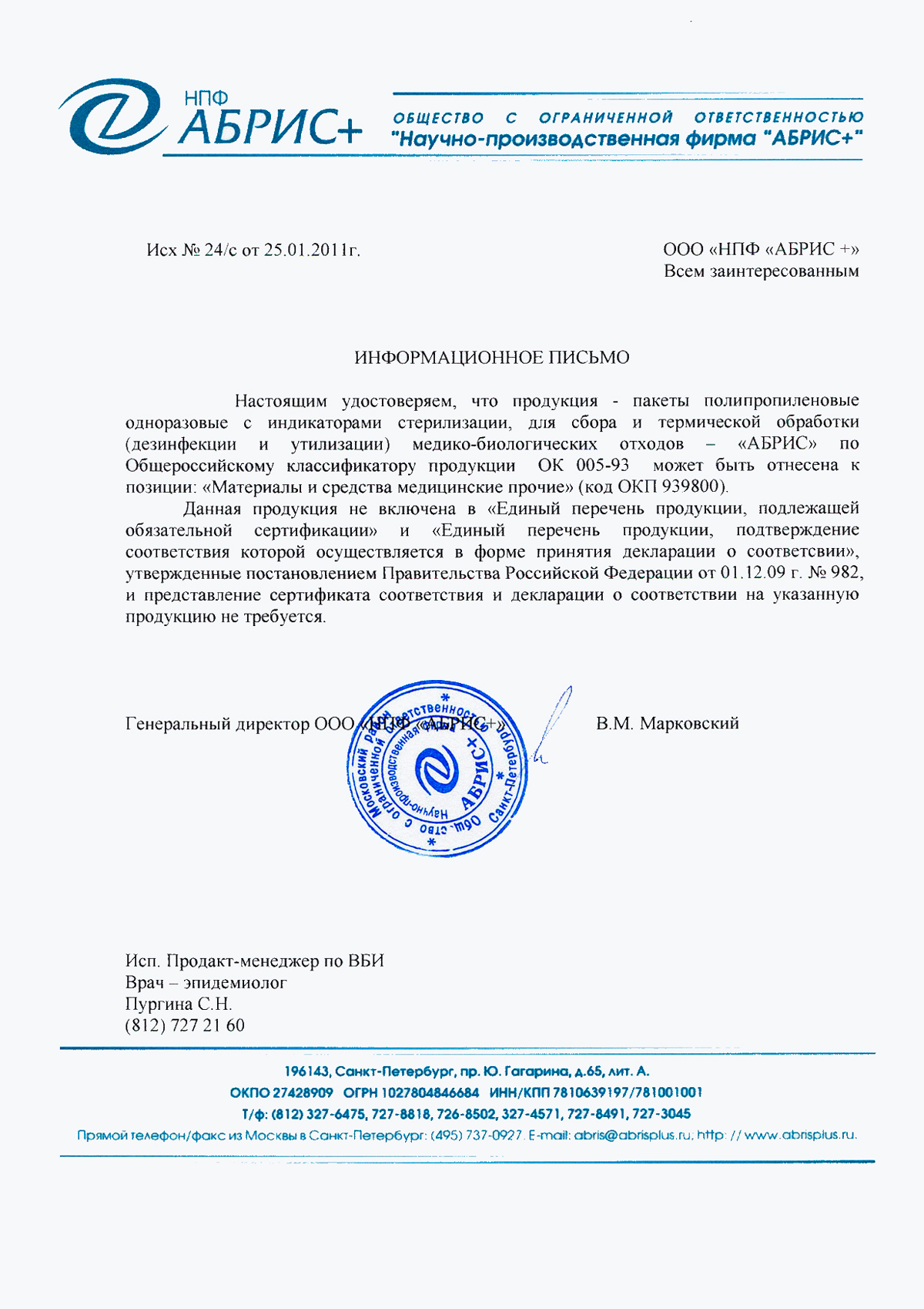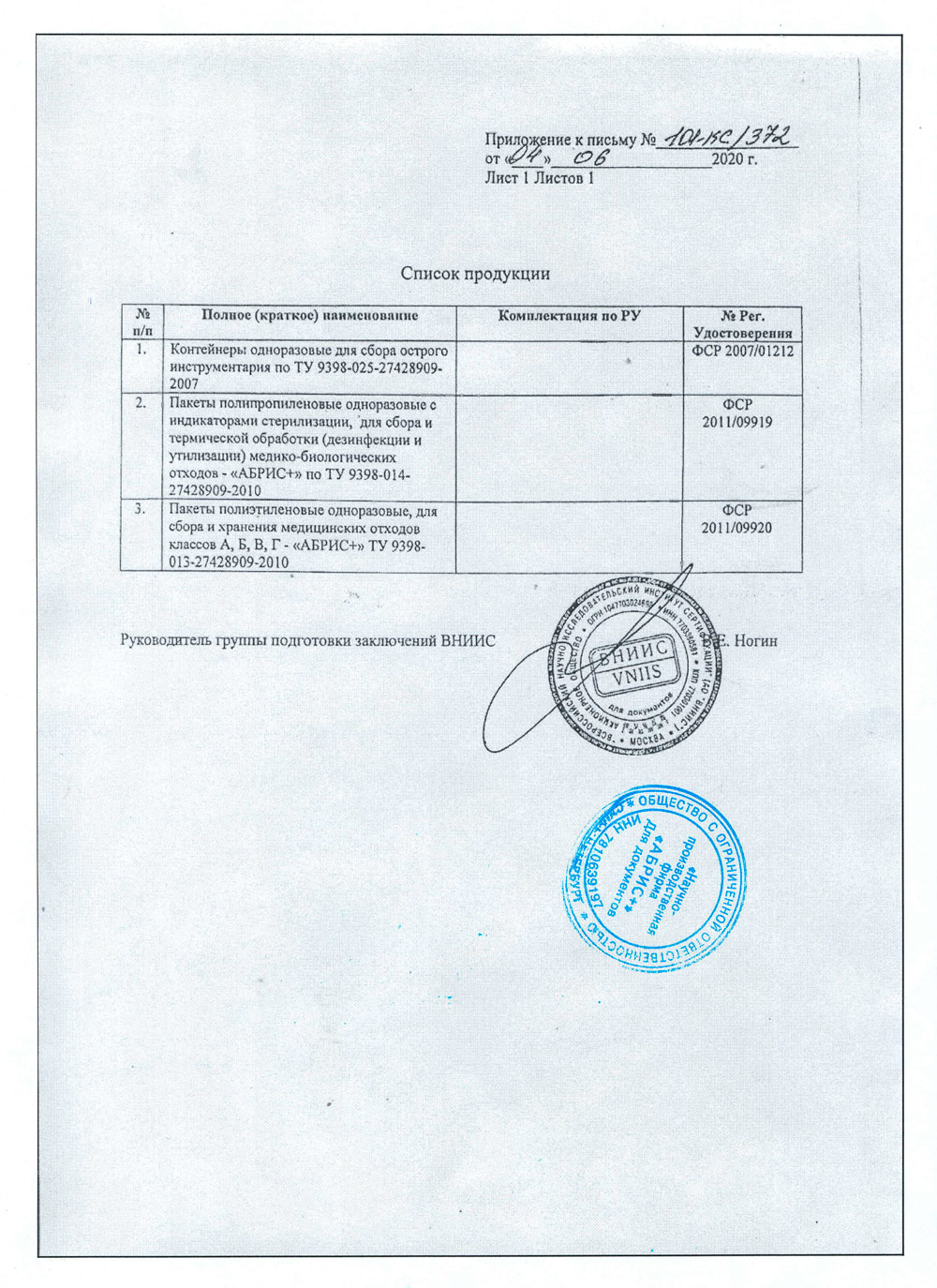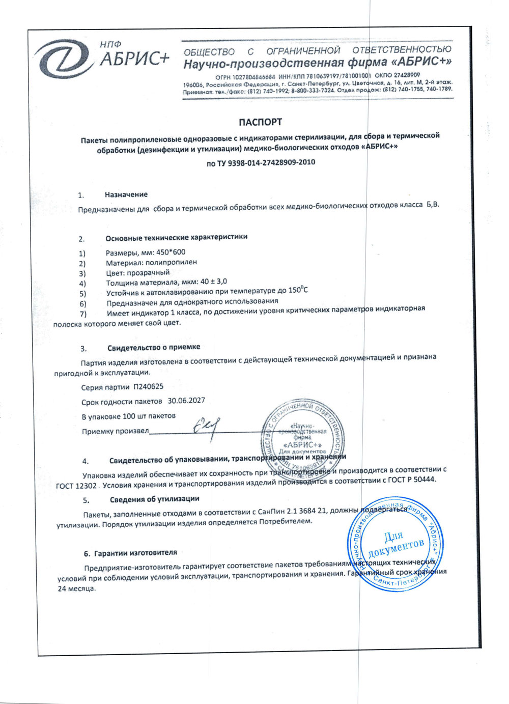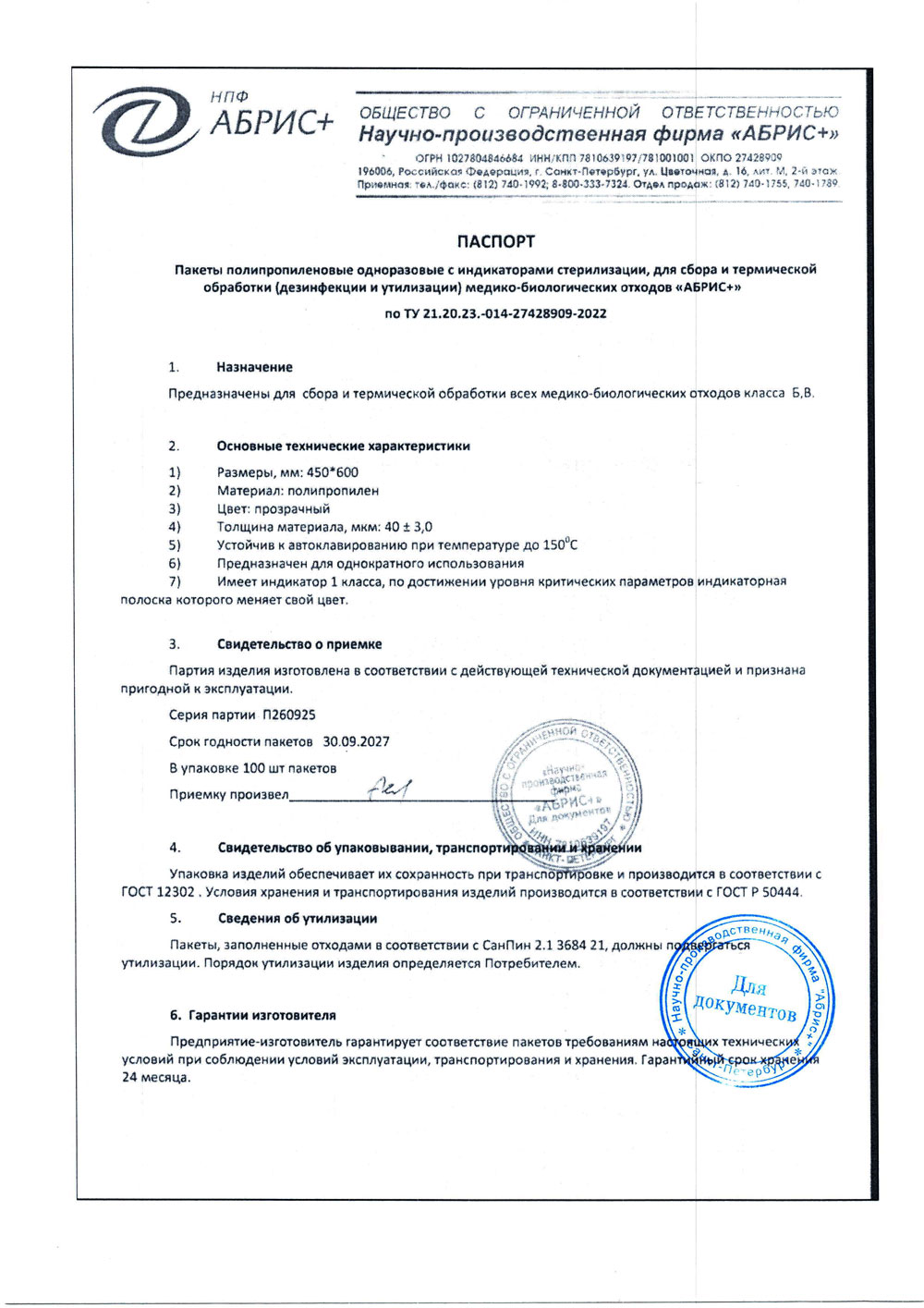 - Пакеты пп однор. для сбора и термич. обработки АБРИС+.РУ-2025-1