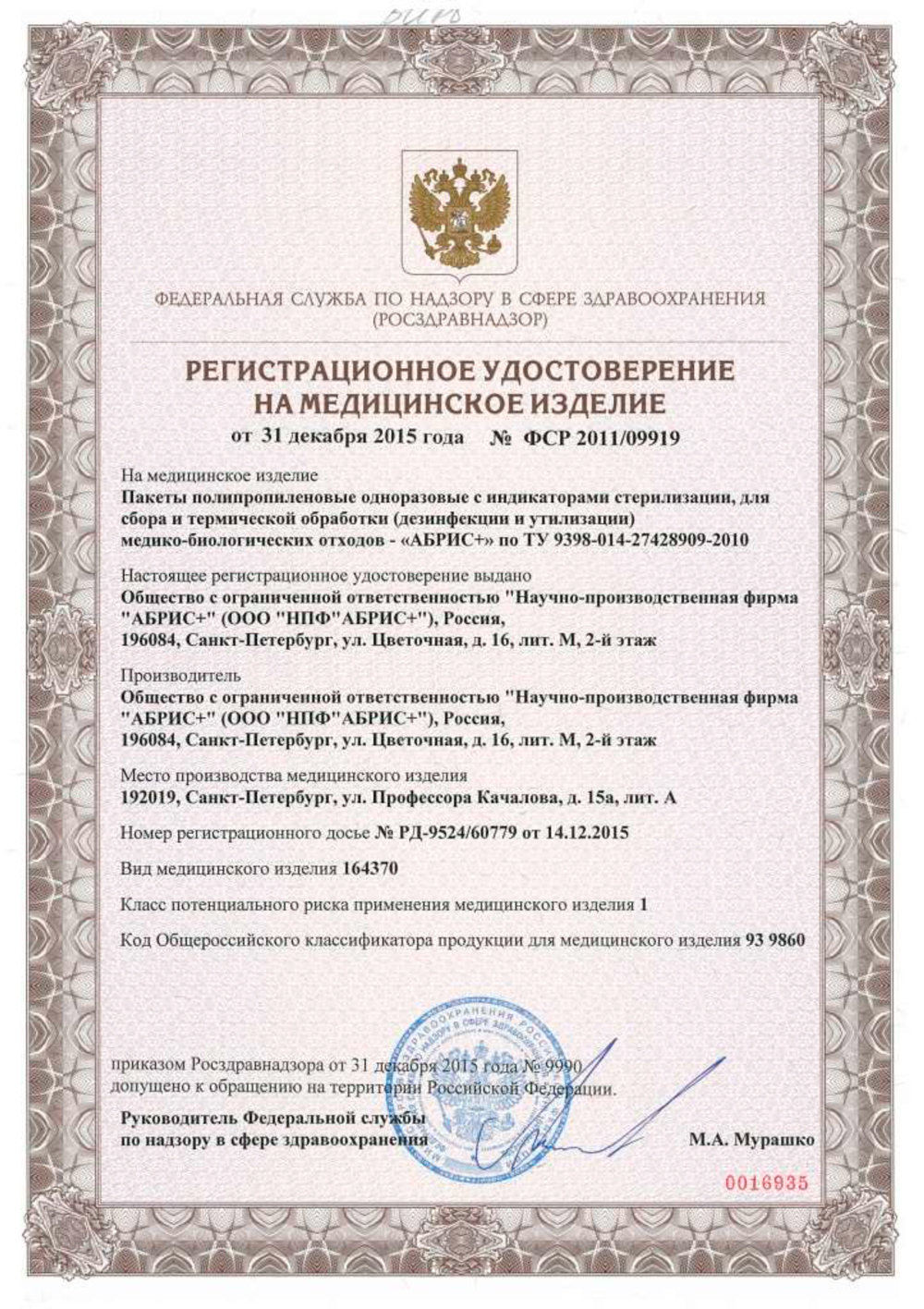 - Пакеты пп однор. с индикатором стерил., для сбора и термич. обработки. АБРИС+.Сп