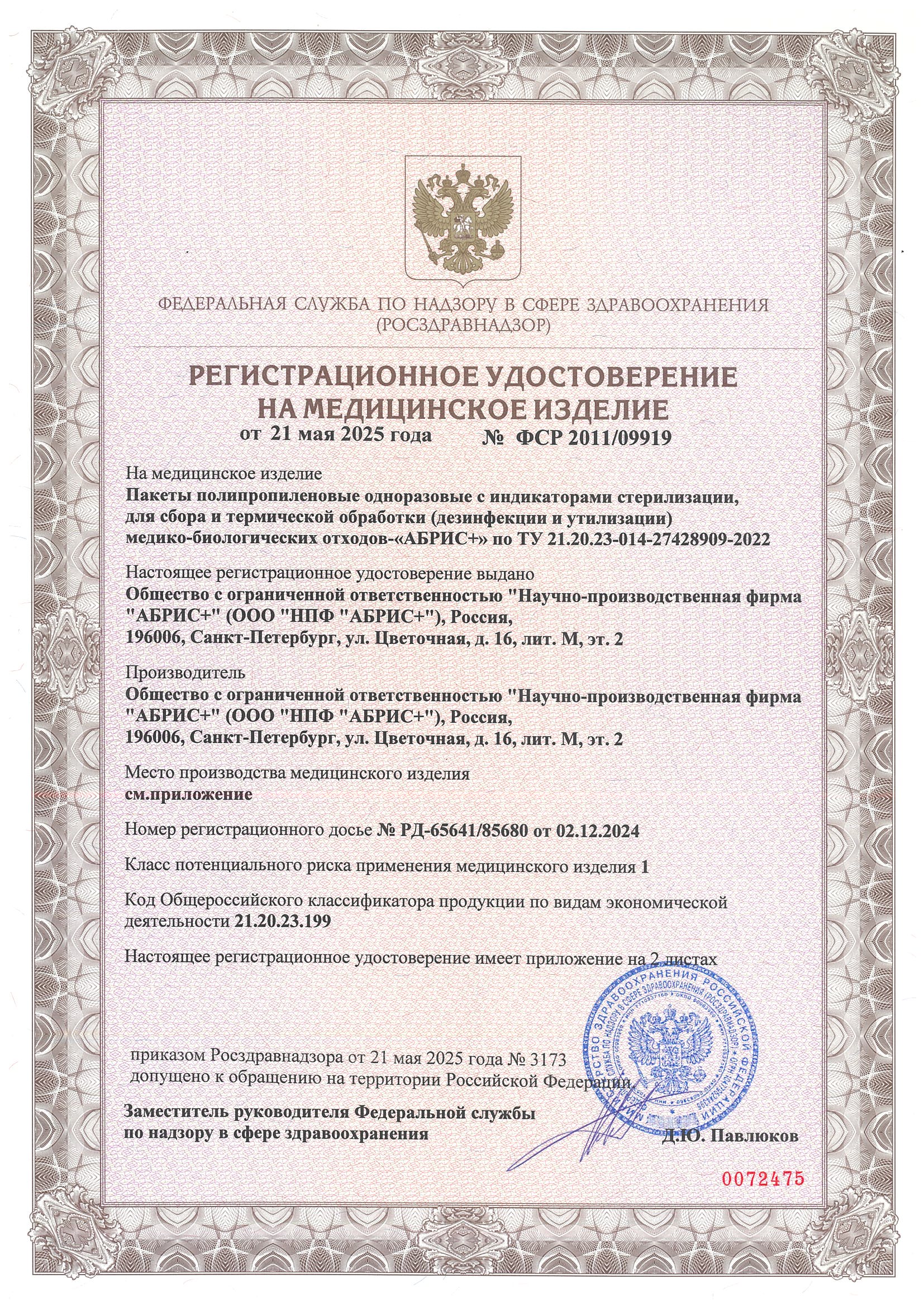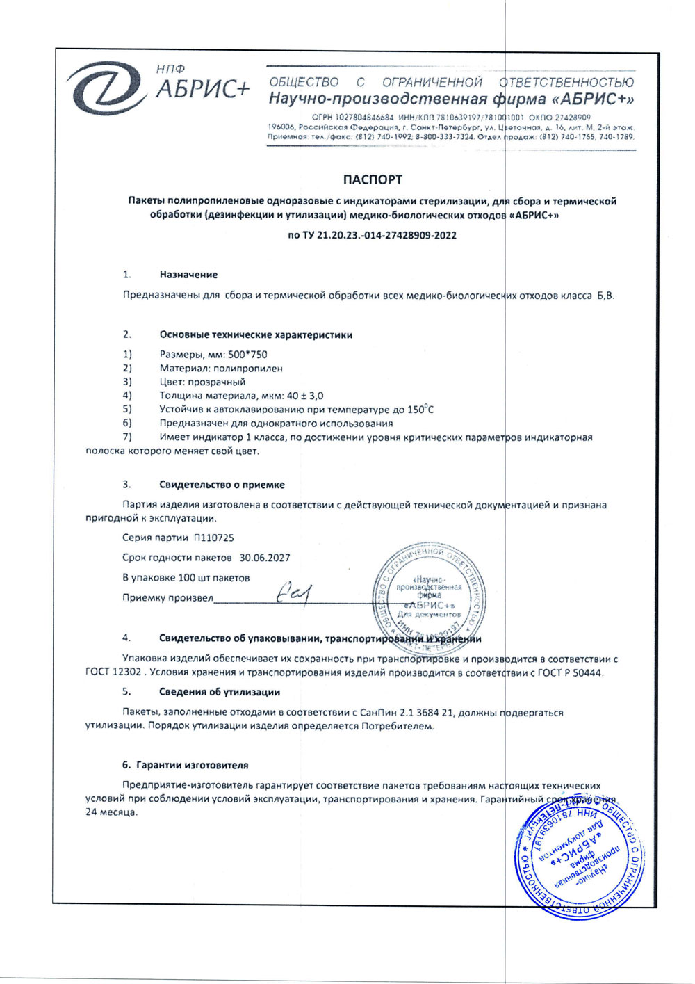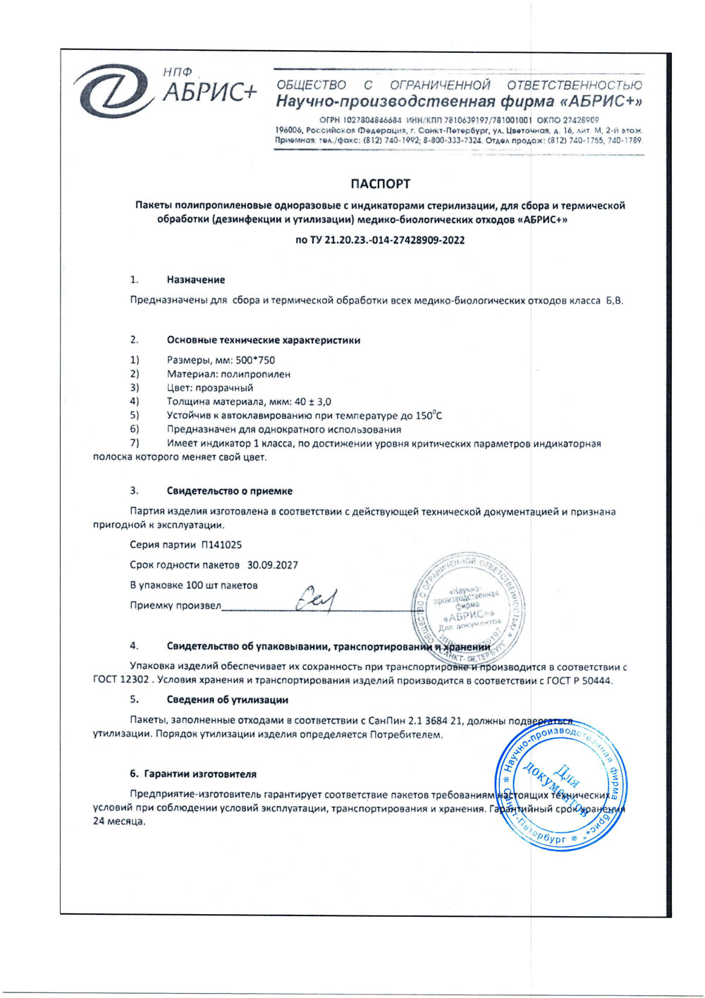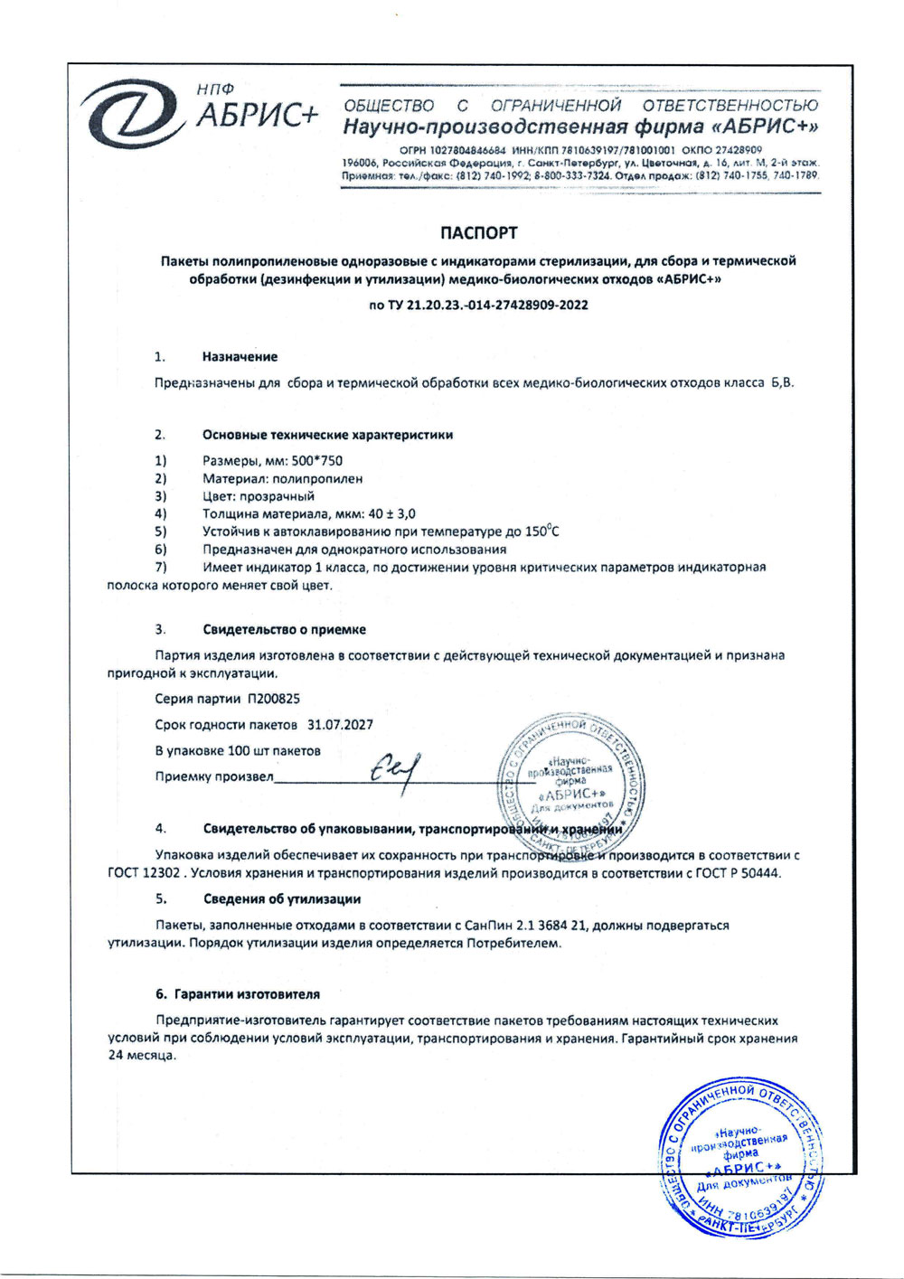- Пакеты пп однор. для сбора и термич. обработки АБРИС+.РУ-2025-1