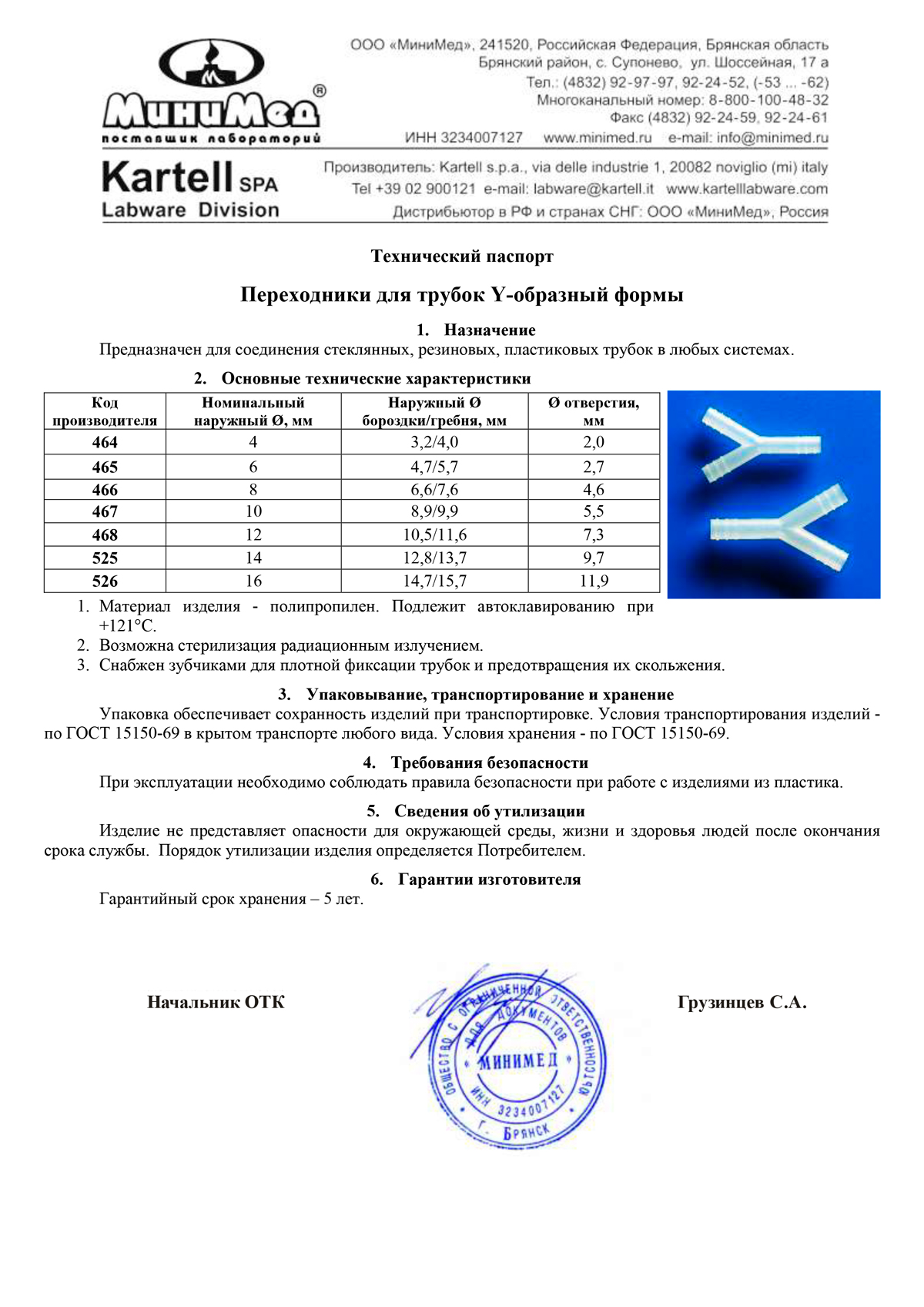 Переходник Y-образный,нар.диаметр 14 мм, п/п, Kartell,уп.5 шт.