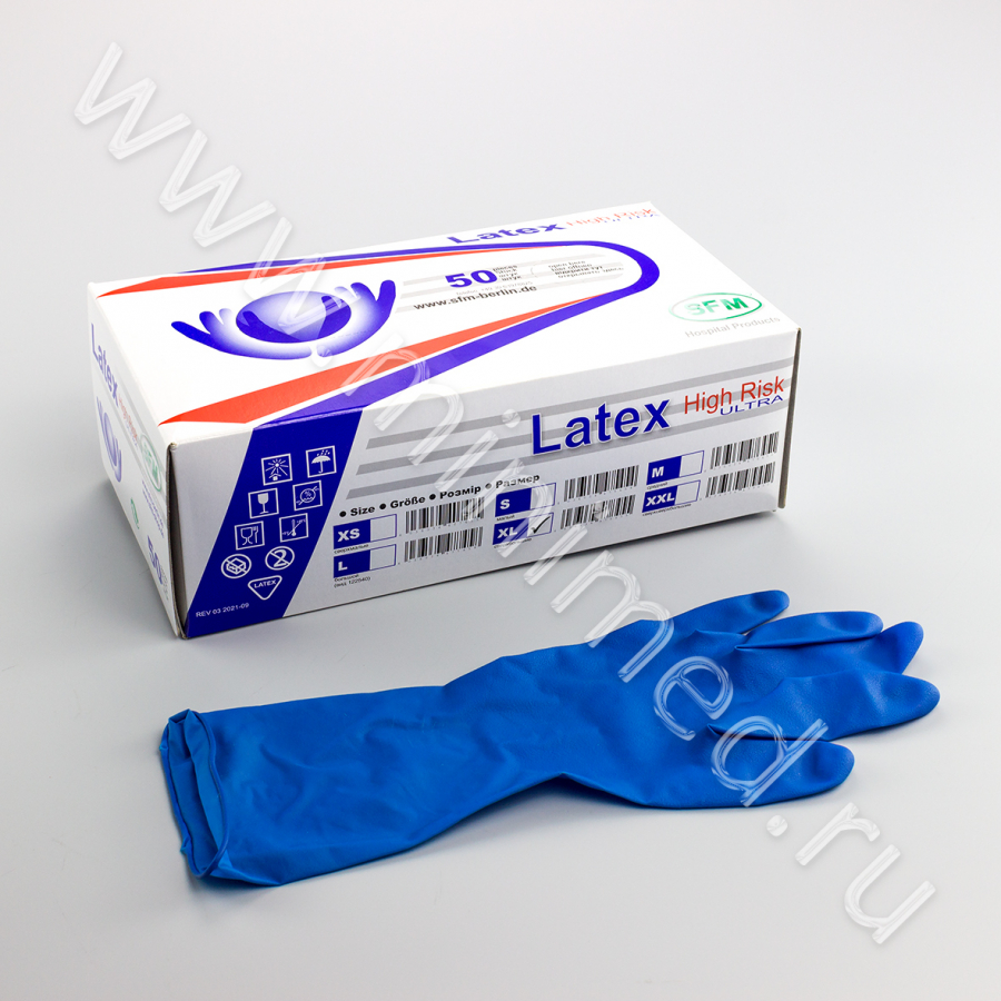 Перчатки HIGH RISK латексные смотровые диагностические нестерильные , р-р XL (SFM , Германия), уп.25/250 пар