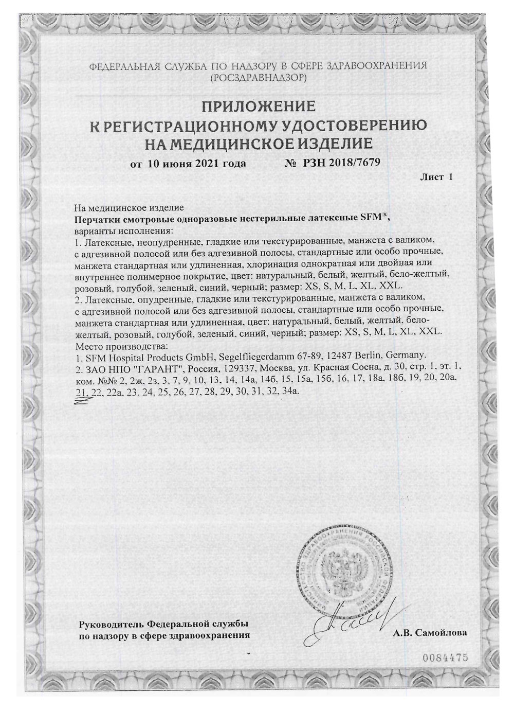 - Перчатки SFM Hospital Products GmbH. Сертификат до 10.05.2025