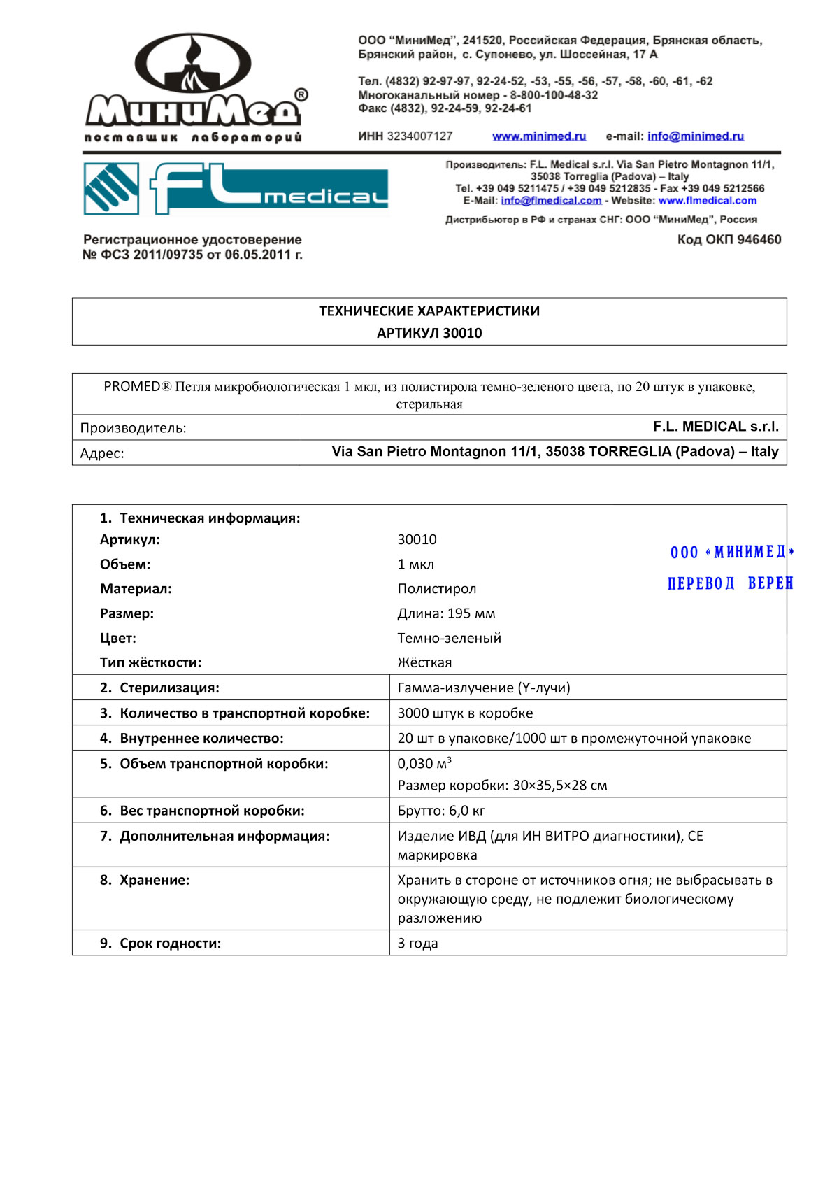 Петли микробиологические 1 мкл,стер.,п/с,жесткая,уп.20 шт./1000/3000 шт., FL medical