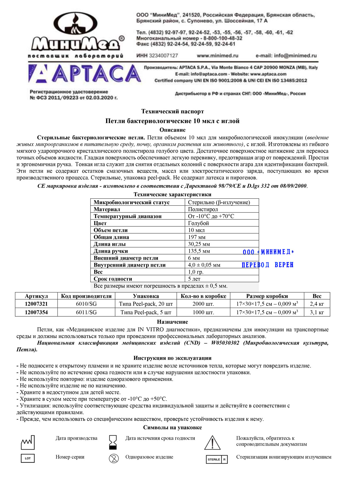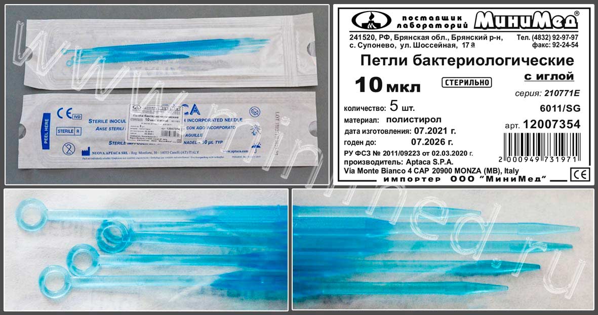 Петли бактериологические 10 мкл с иглой,стер.,п/с,уп.5 шт./кор/1000, Aptaca