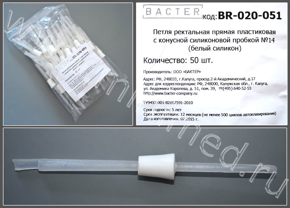 Петля ректальная прямая пластиковая с конусной силиконовой пробкой № 14 (БС) с каналом , BR-020-051, уп.50шт