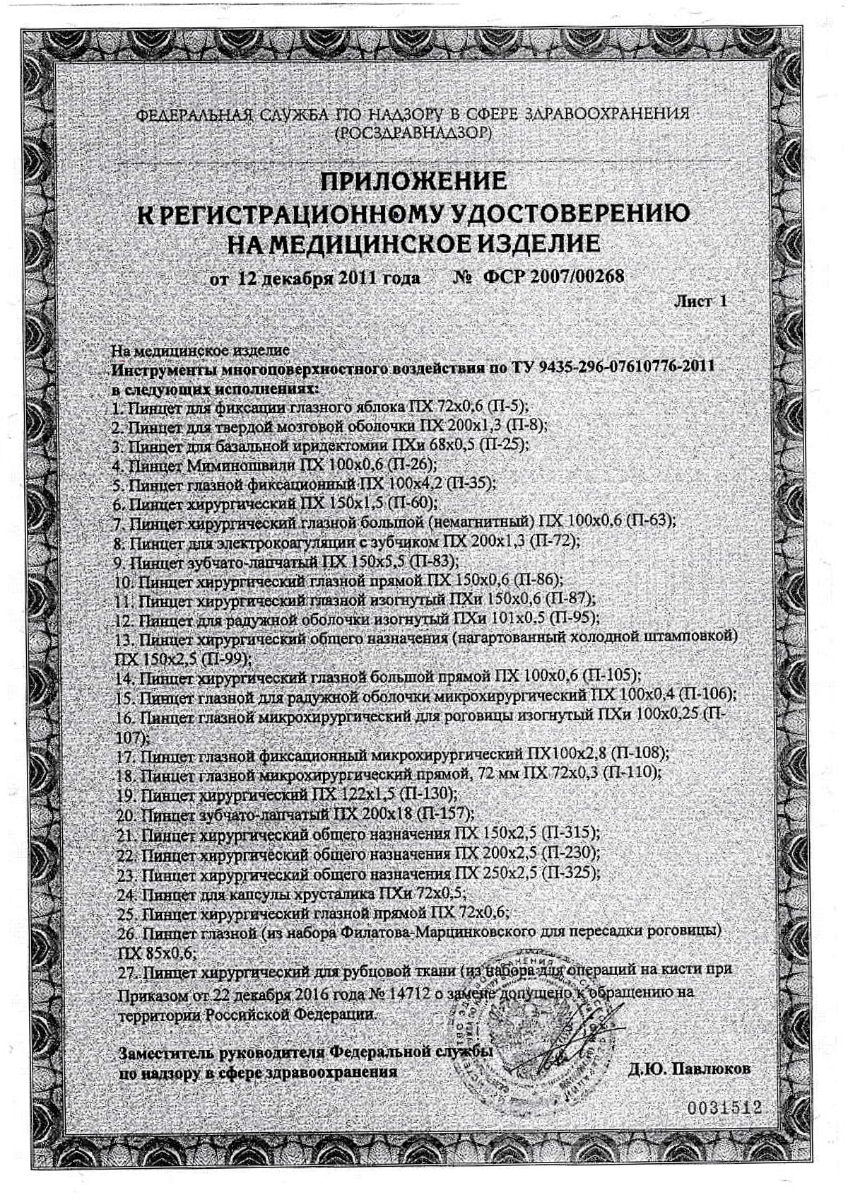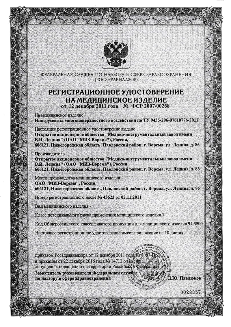 РУ № ФСР 2007/00268 от 12.12.2011 г.