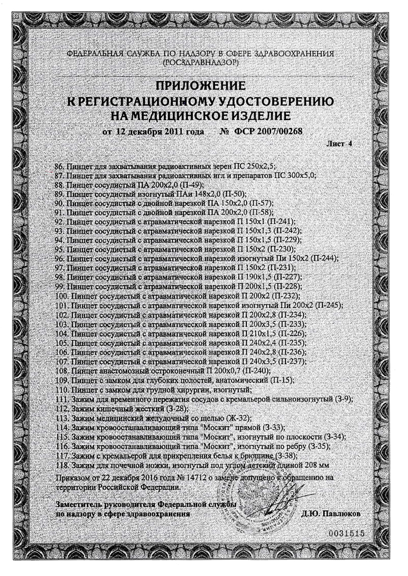 - Пинцет анатомический 200х2,5 ПАон-МИЗ-В. Паспорт