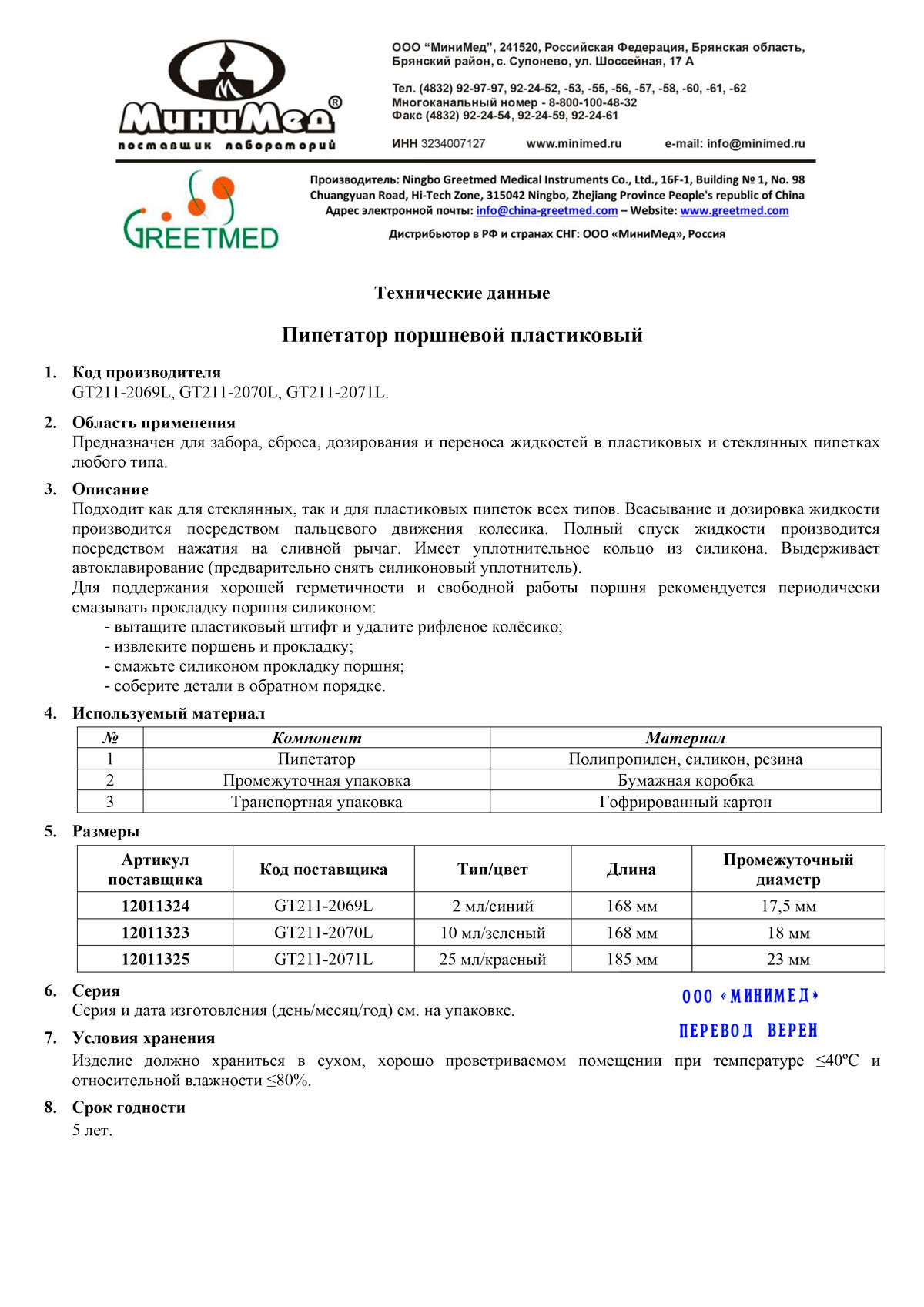 Пипетатор поршневой до 2 мл,п/п, инд.уп./10/100 шт