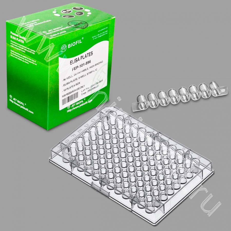 Планшет иммунологический 96-лунок, высокое связывание, открепл., 8 лунок х12 стрипов,без ДНКаз и РНКаз, п/с, плоское дно, стер., уп.10шт./кор.200,Jet Bio-Filtration
