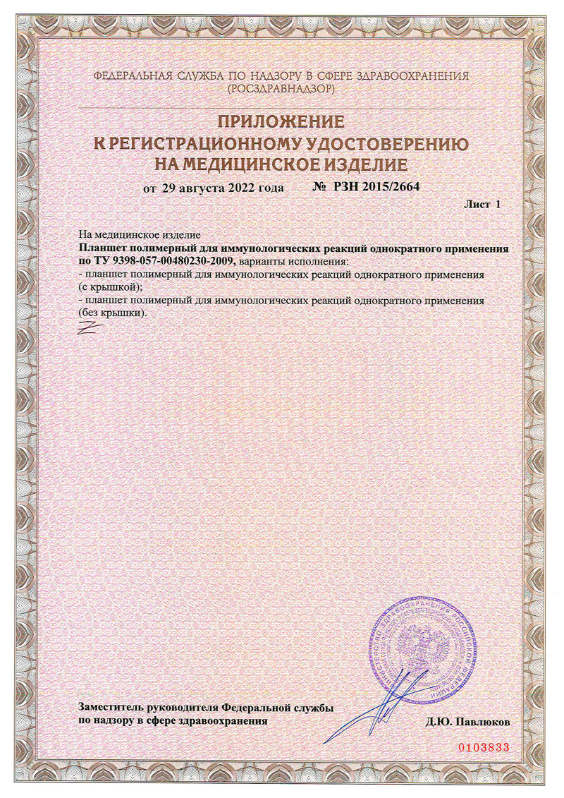- Планшет полимерный для иммунологических реакций, п. 023082025 до 01.08.2028