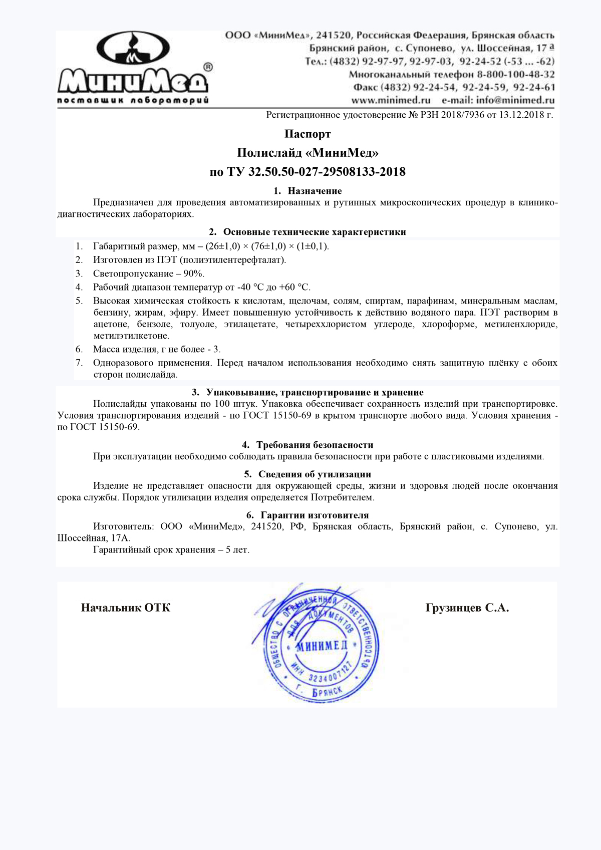 Полислайд "МИНИМЕД" по ТУ 32.50.50-027-29508133-2018, 26*76*1,0 , уп.100 шт