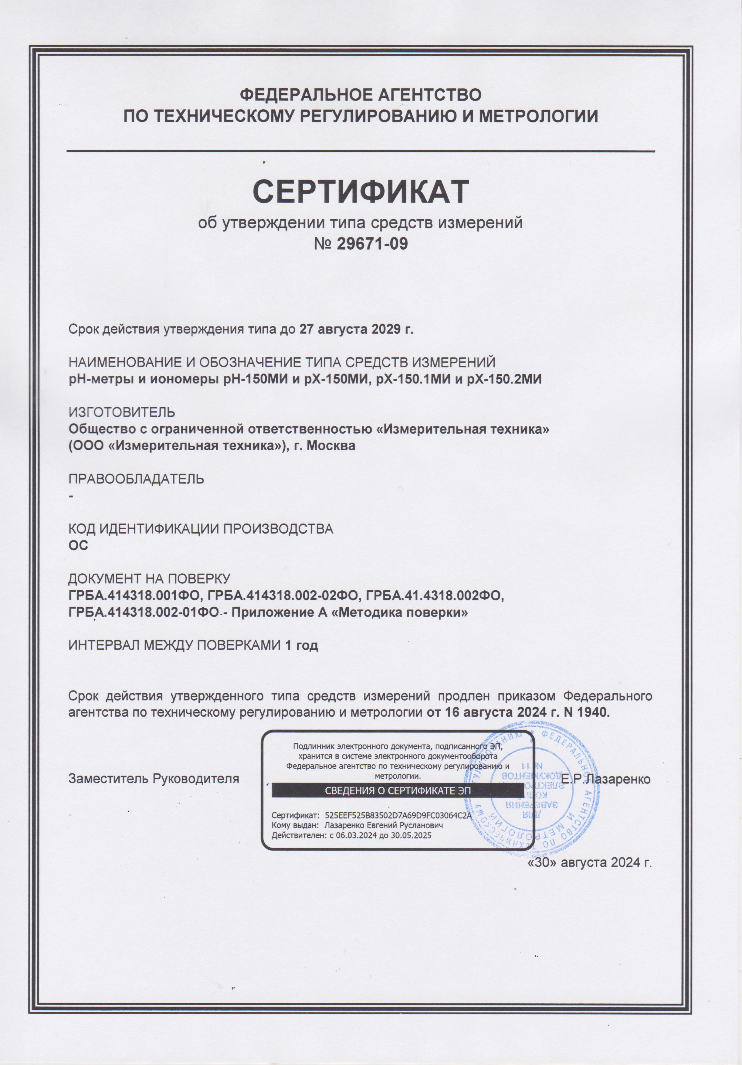 - Приборы pH-метры рН-150МИ. Свидетельство об утвер. типа средств измерений. до 20