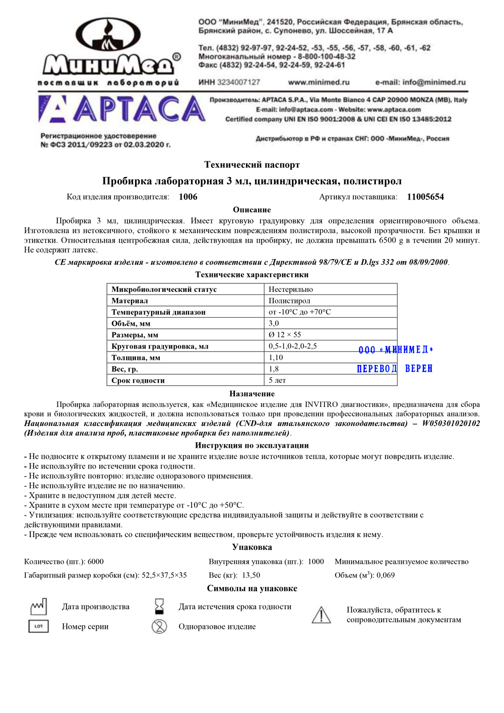 Артикул..................................................... 11005654