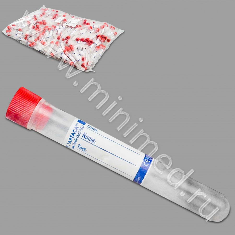 Пробирка лабораторная 5 мл, цилиндрическая,12×86 мм, круглод.,б/дел.,с пробк.и этикеткой,п/п,уп.500/2000 шт., стер., Aptaca