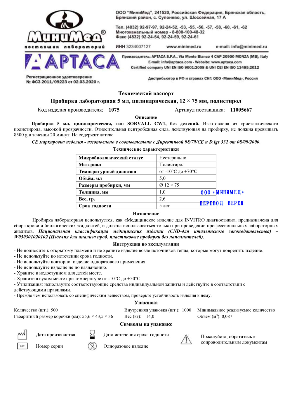 Артикул...................................................... 11005667