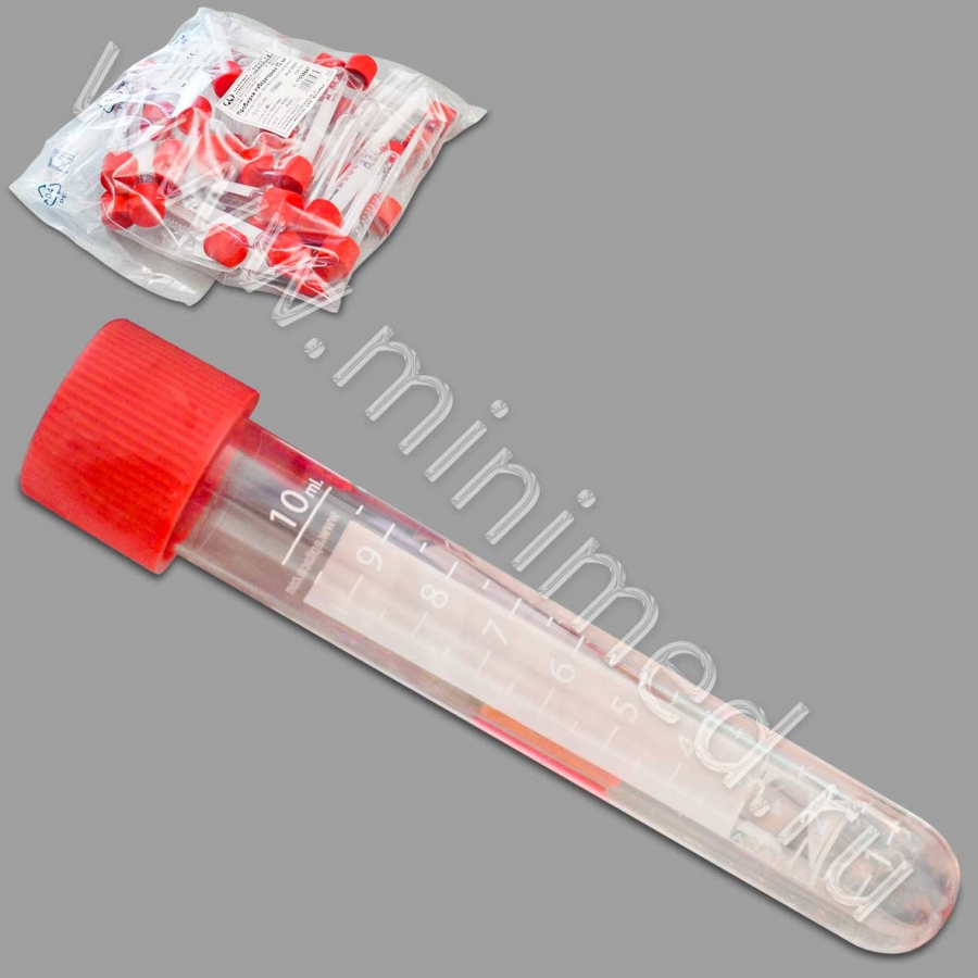 Пробирка лабораторная 10 мл, цилиндрическая,16×100 мм,с винт.крышкой,с дел.,п/с,стерильная, уп.50/250шт.,Aptaca