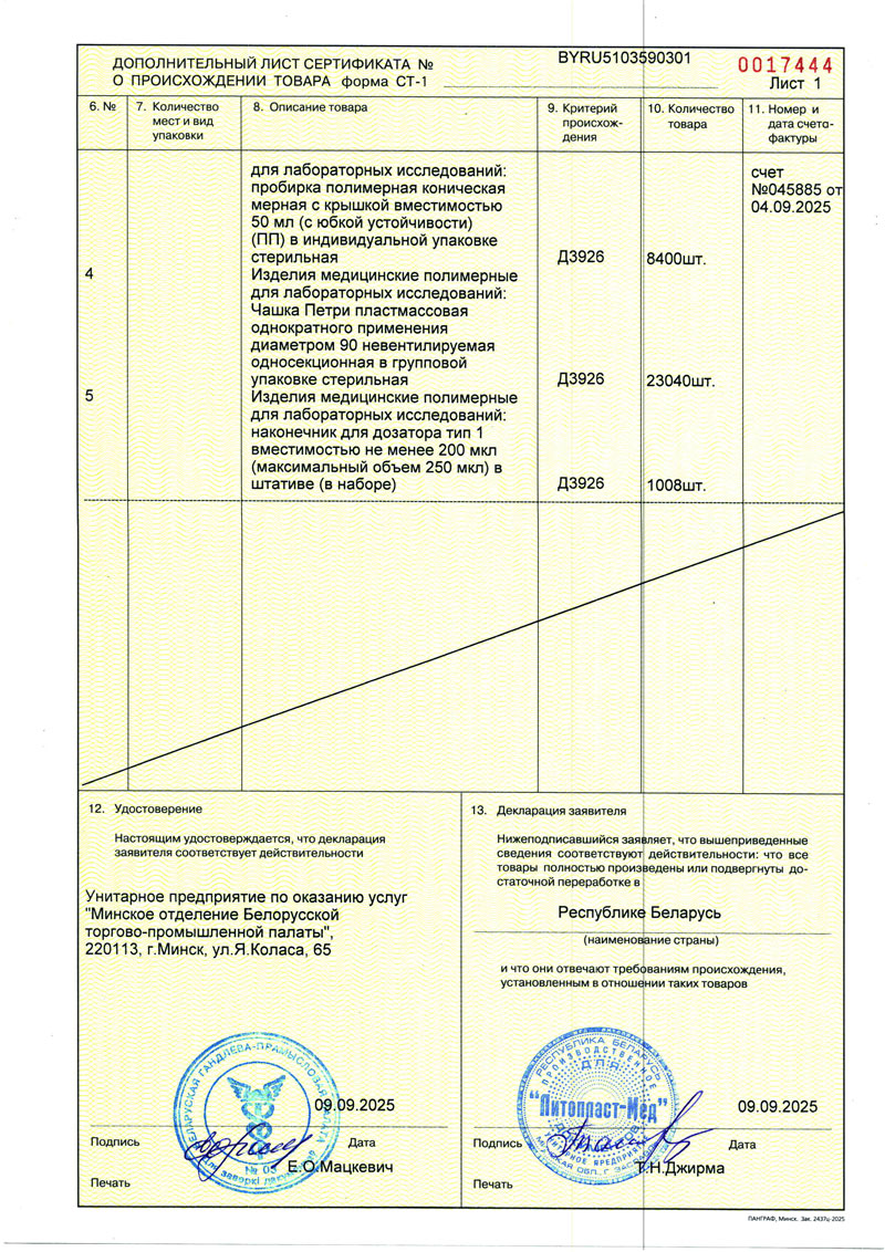 - Изделия мед. полимерные для лабор. исследований. Литопласт-Мед. РУ-1
