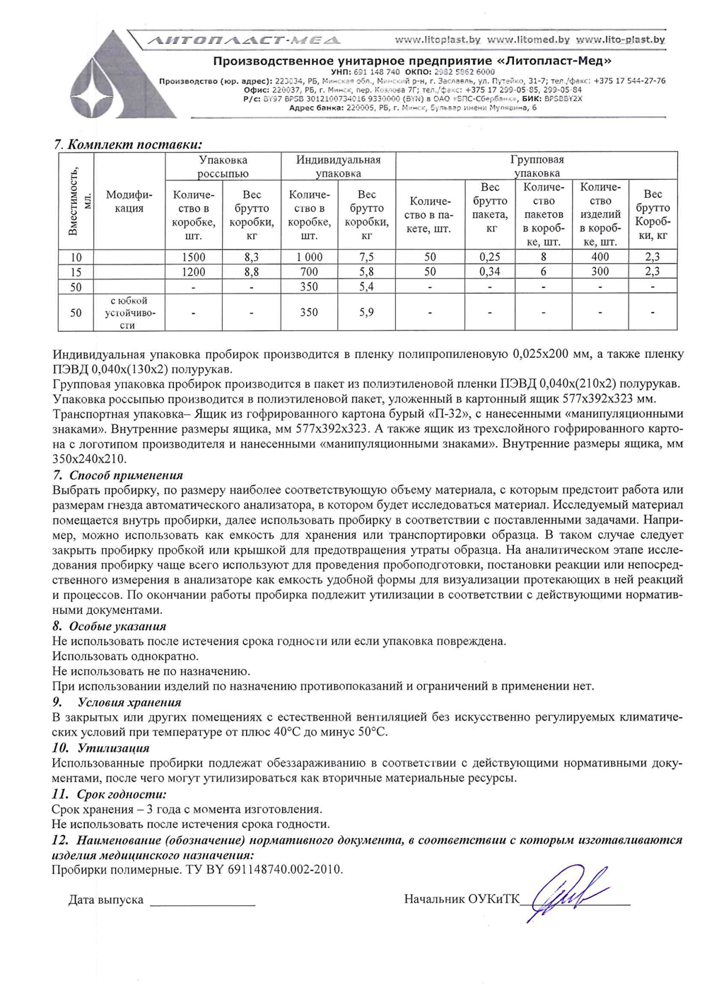 ТУ BY 691148740.002-2010