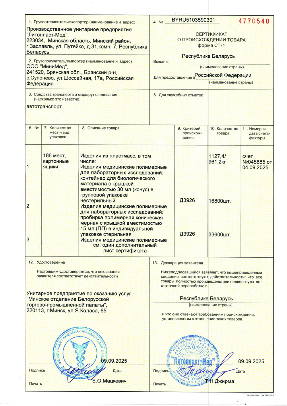 - Изделия мед. полимерные Литопласт-Мед. Сертификат до 15.02.2027