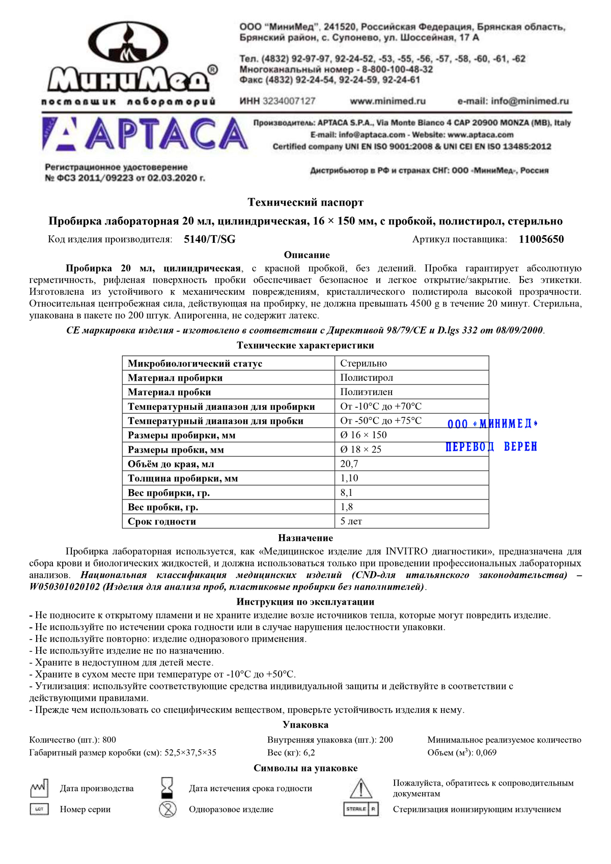 Предназначеня для отбра проб, проведения химических, биологических, микробиологических анализов, в малых объемах химических реакций. Изготовлена из прозрачного полистирола, герметично укупоривается красной пробкой. Стерильная. Относительная центробежная сила, действующая на пробирку, не должна превышать 4500 g.