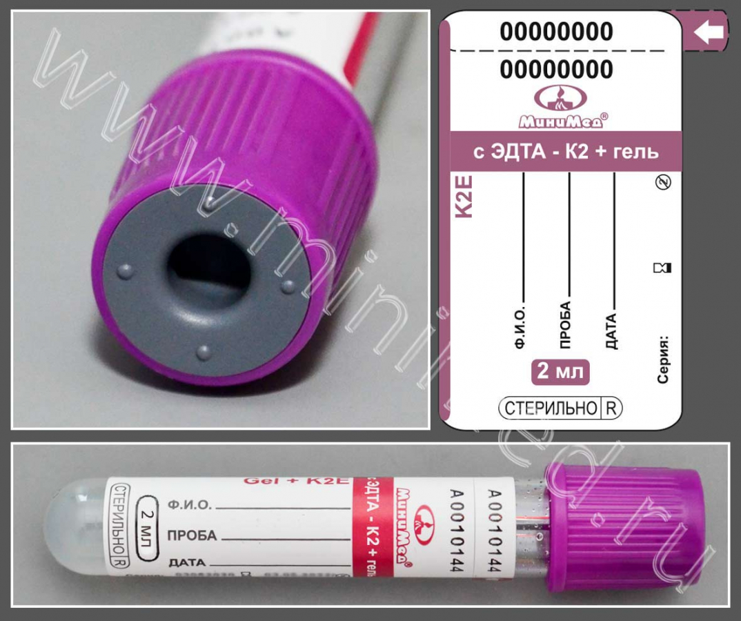 Калиевая соль этилендиаминтетрауксусной кислоты (ЭДТА) является предпочтительным антикоагулянтом для гематологических исследований. Гель — специальный материал, предназначенный для образования стойкого барьера между клеточными компонентами крови и сывороткой во время центрифугирования.