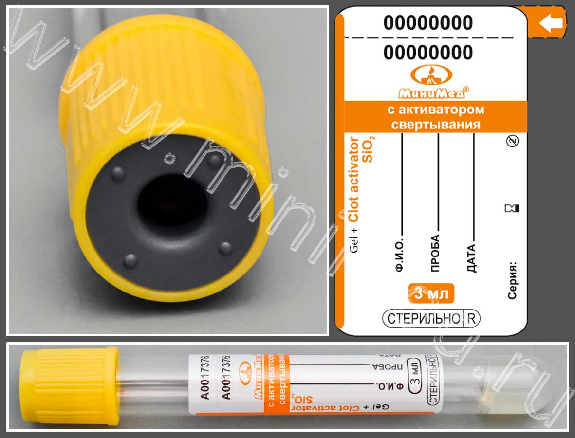 Пробирка вакуумная МиниМед с активатором свёртывания и разделительным гелем, 3мл,13*100 мм, оранжевый, ПЭТФ,уп.100, СПЕЦЗАКАЗ