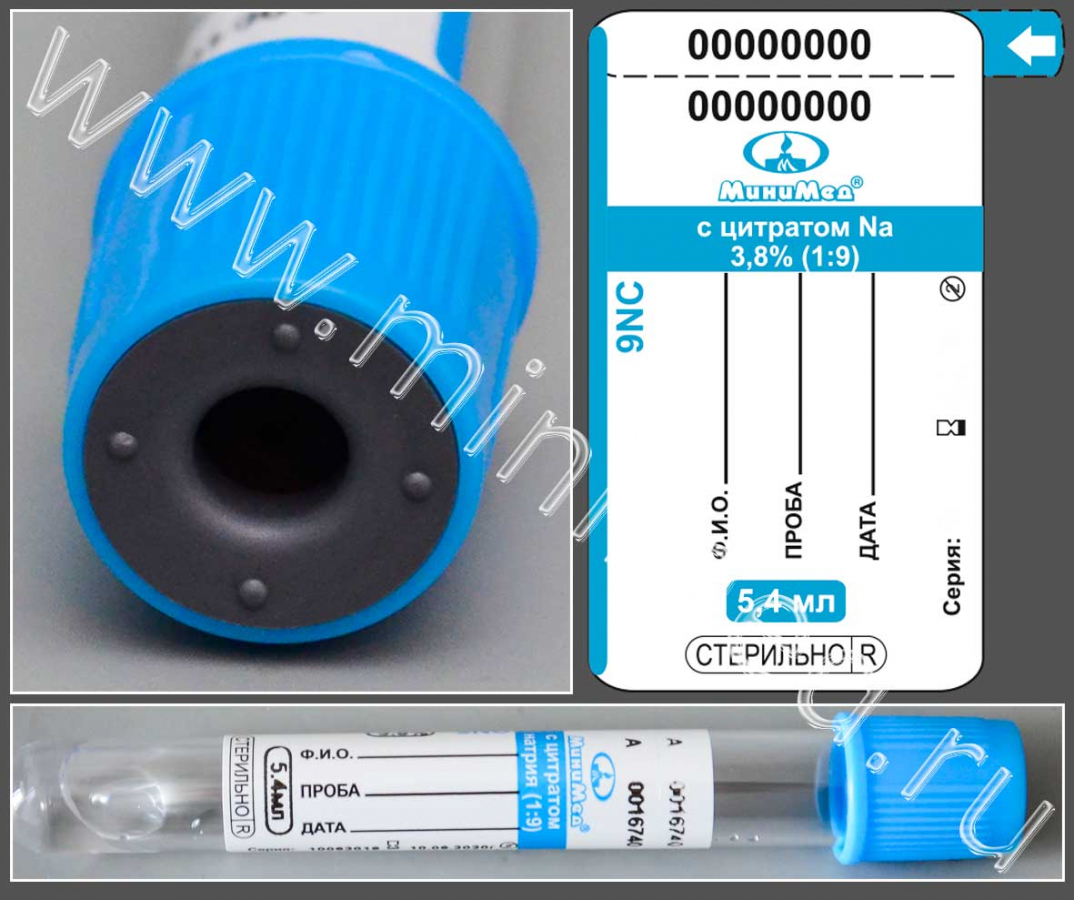 Пробирка вакуумная МиниМед с цитратом натрия 3,8%, 5,4 мл,13*100 мм, голубой, ПЭТФ,уп.100 шт, СПЕЦЗАКАЗ