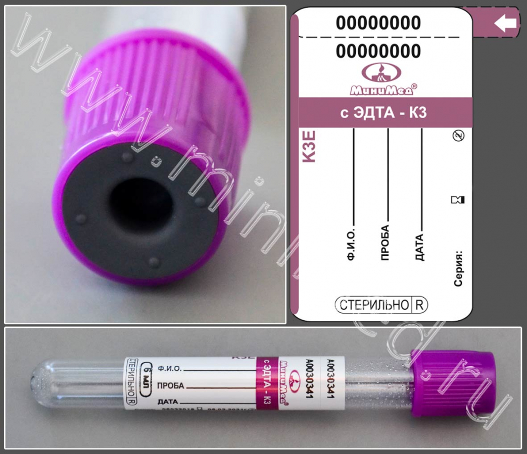 Пробирка вакуумная МиниМед с К3-ЭДТА, 6 мл, 13×100мм, фиолетовый, ПЭТФ, уп.100 шт,