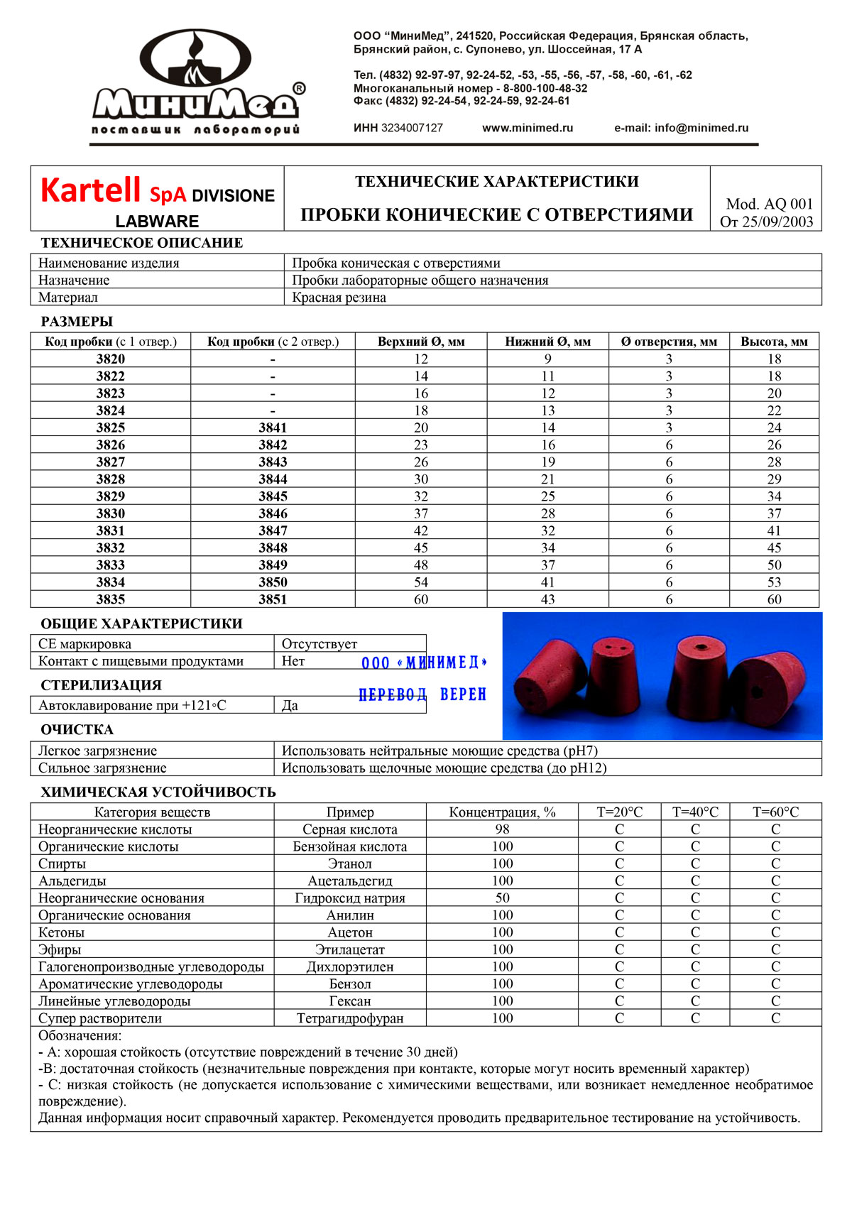 Предназначена для укупорки различной лабораторной посуды. Подходят для газов, неокисляющих жидкостей и кислот средней концентрации.