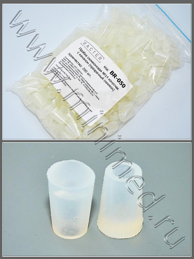 Пробка силиконовая №14 конусная с каналом, прозрачная , BR-050, уп.100шт