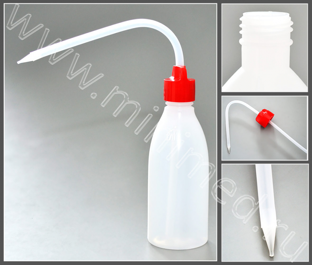 Предназначена для ополаскивания лабораторной посуды и принадлежностей струей жидкости. Промывалка состоит из бутылки и трубки. Возможно выдвижение трубки на необходимый уровень.