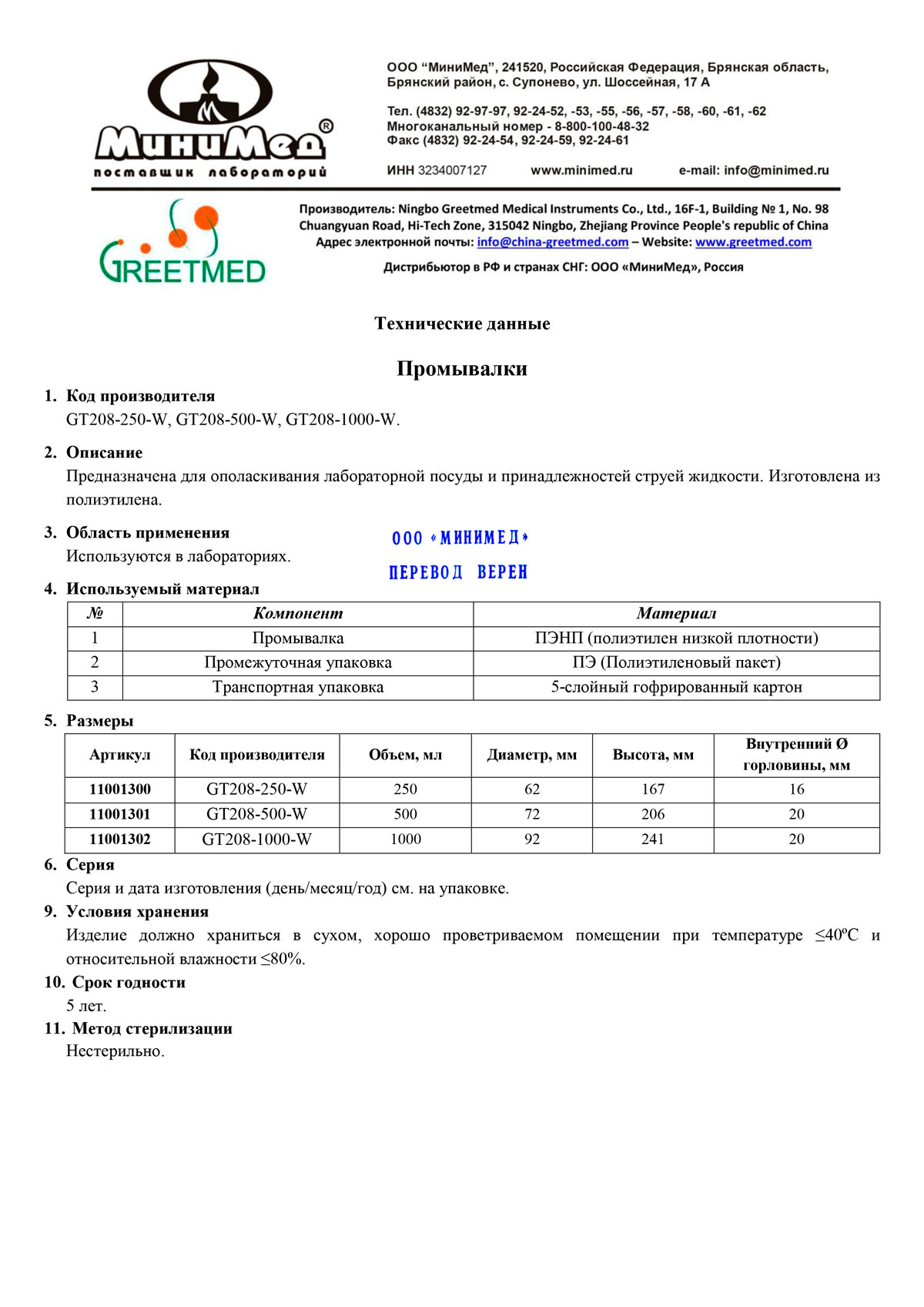 Промывалка п/эт 500 мл, инд.уп./50 шт