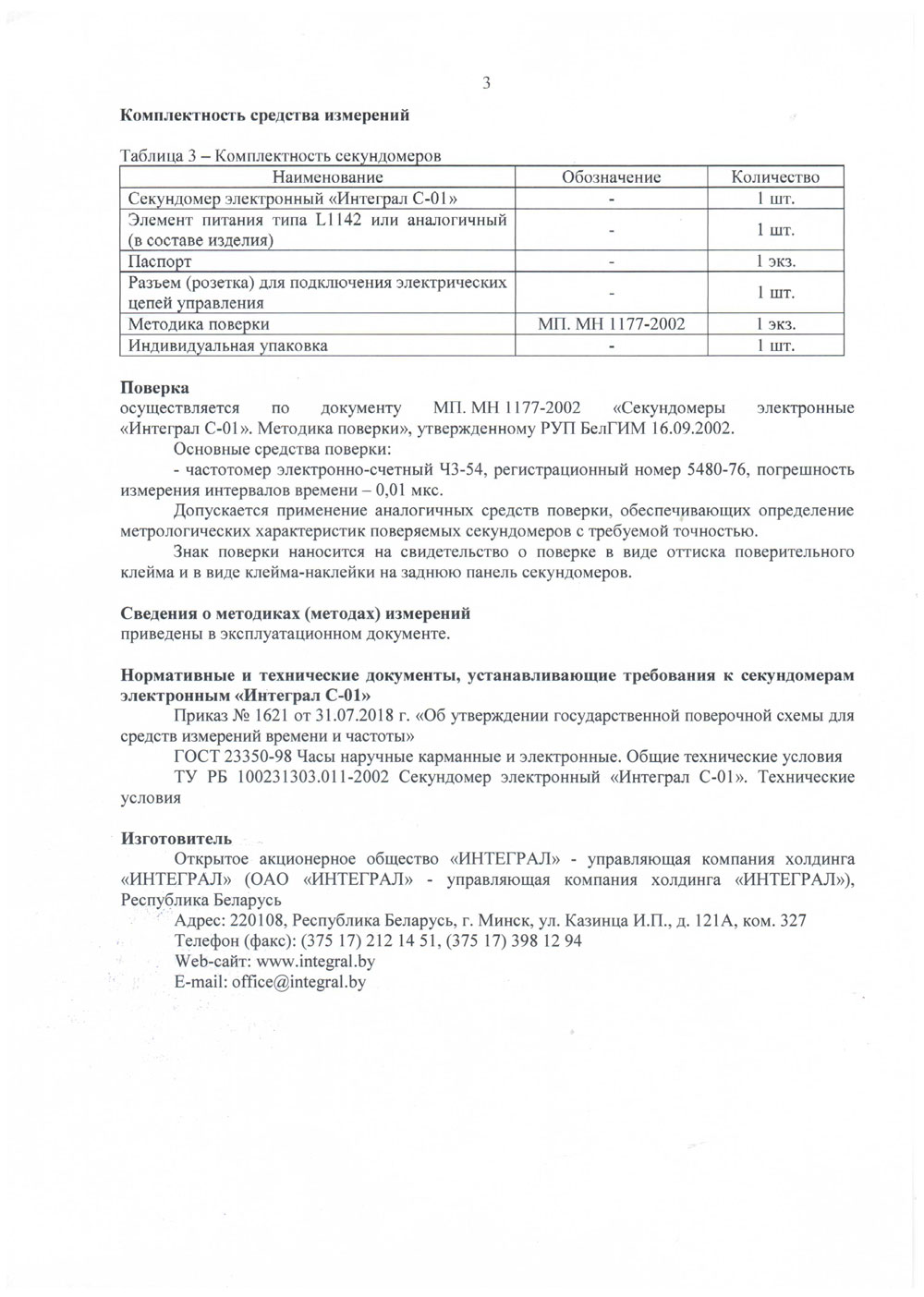 - Секундомер электронный Интеграл С-01. Методика поверки-3
