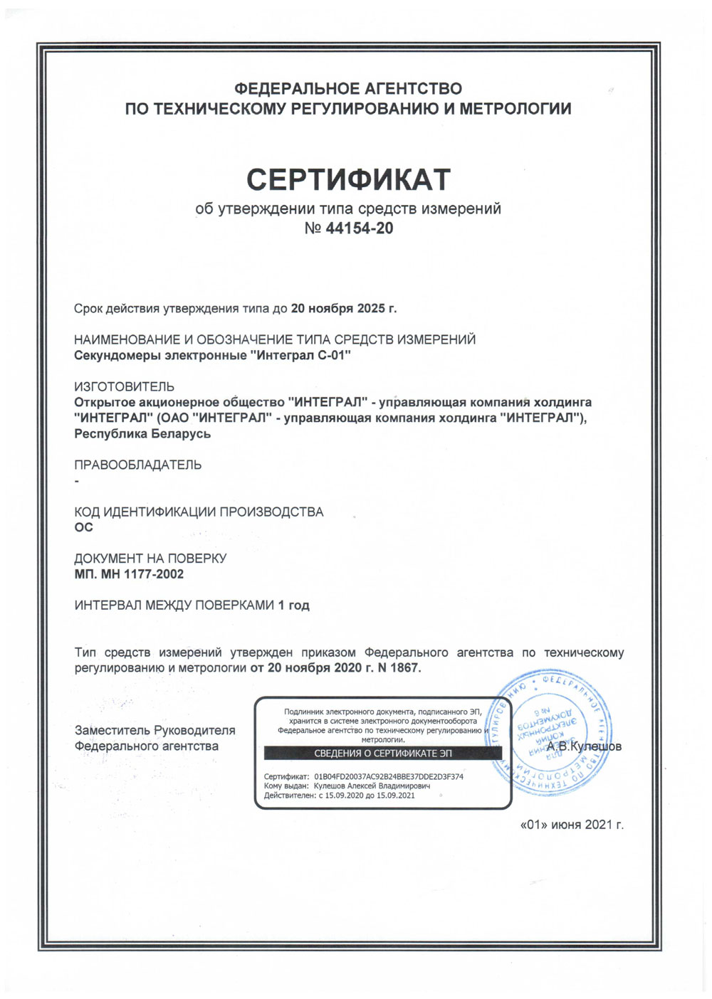- Секундомер электронный Интеграл С-01. Описание к сертификату ТСИ до 20.11.2025-1