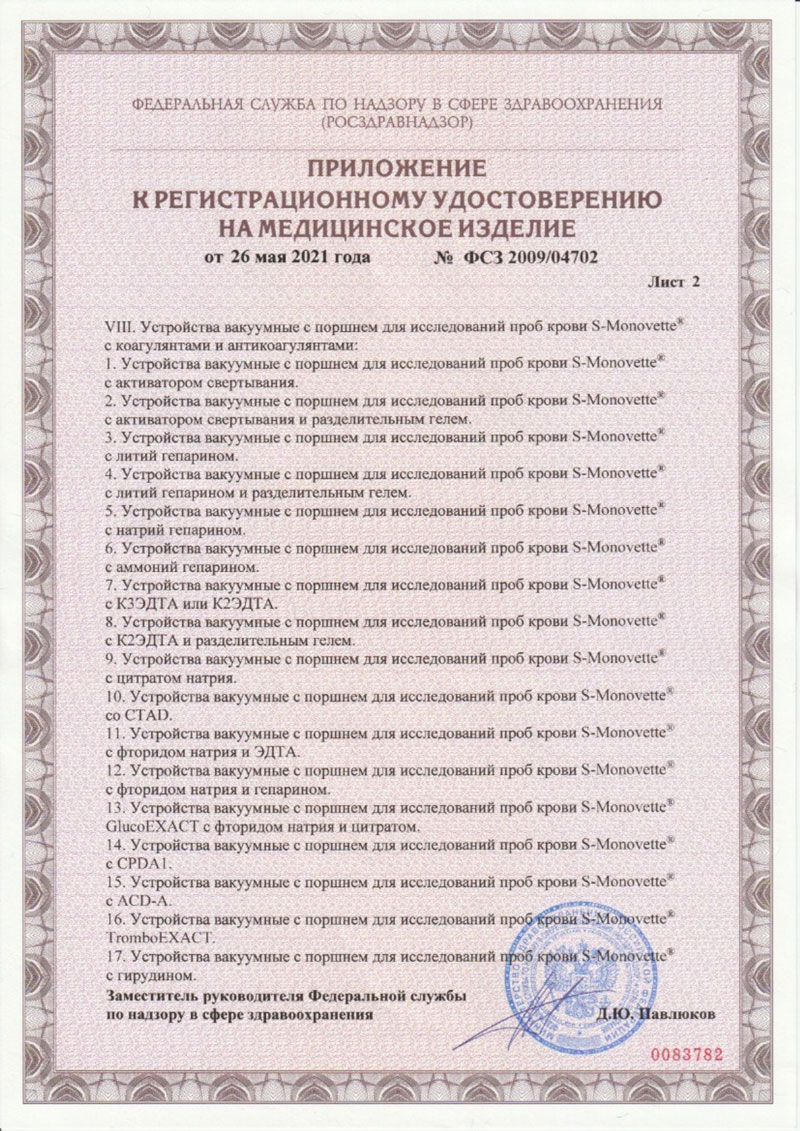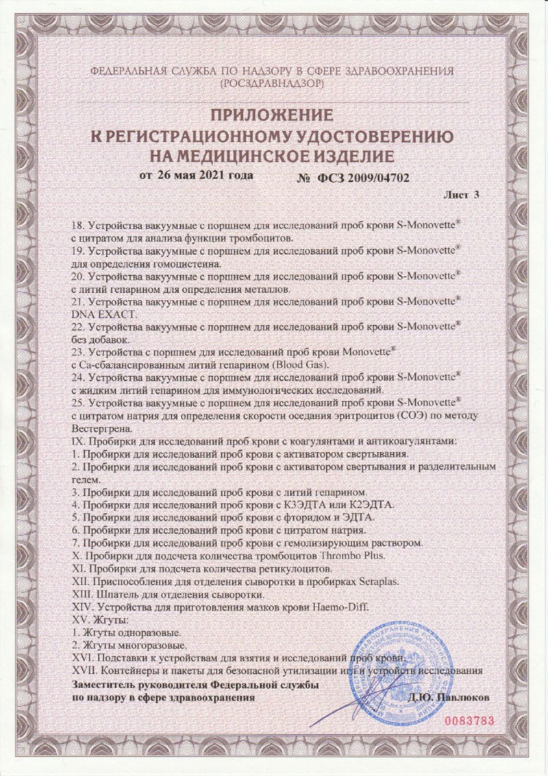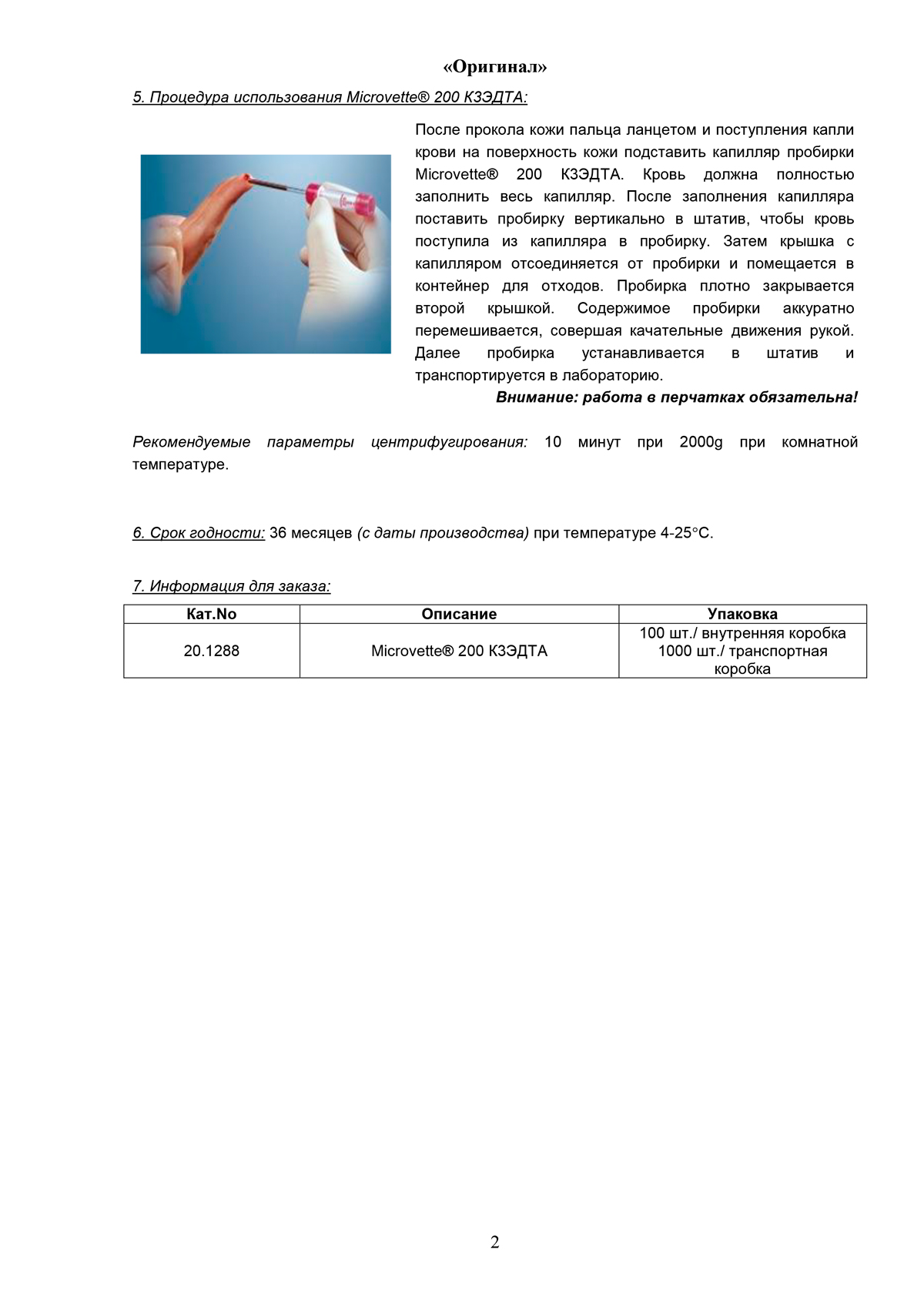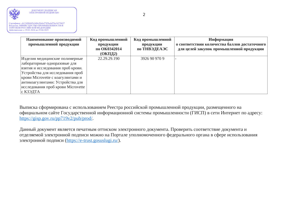 - Устройства для исследования проб крови Microvette с К3ЭДТА. Выписка из РРПП до 2